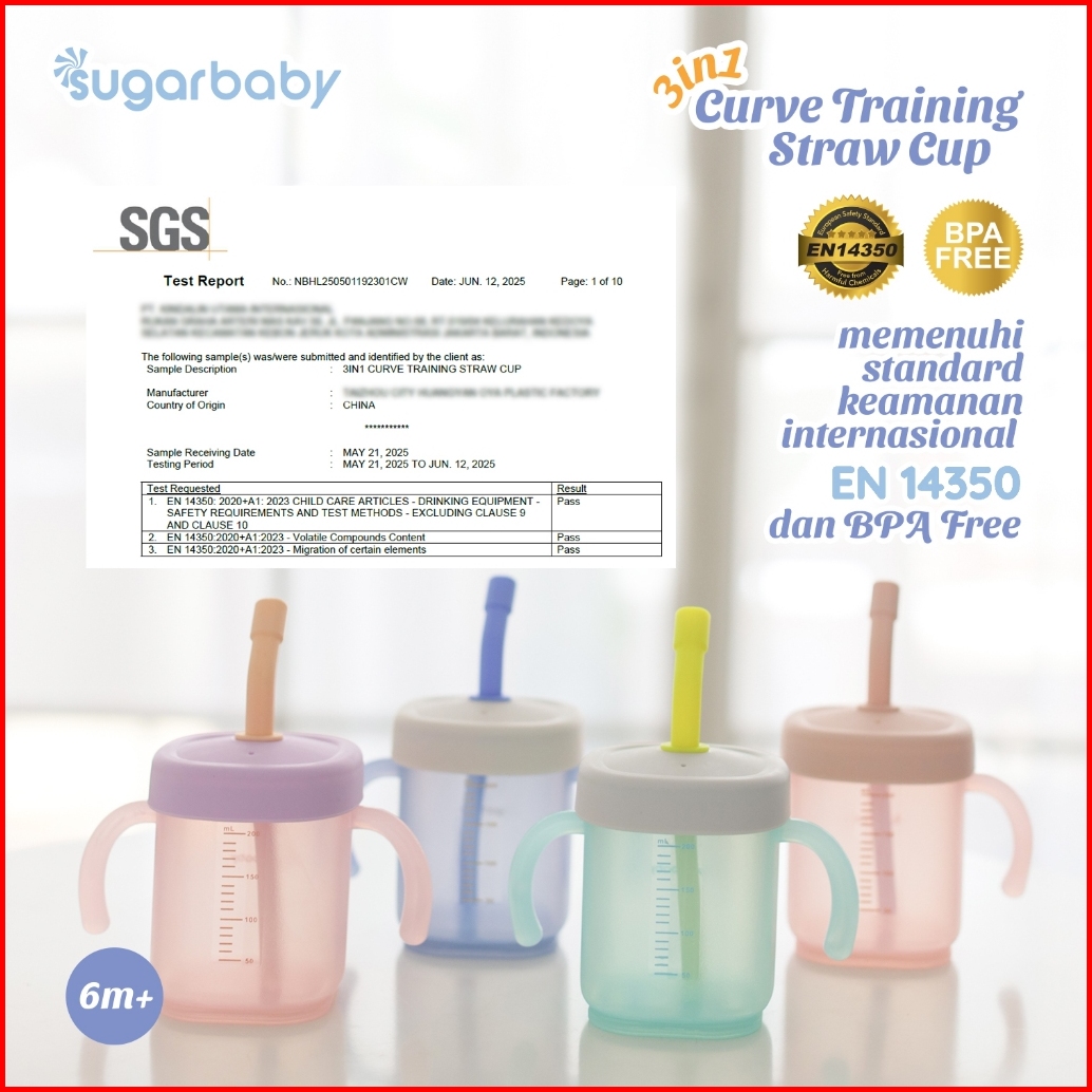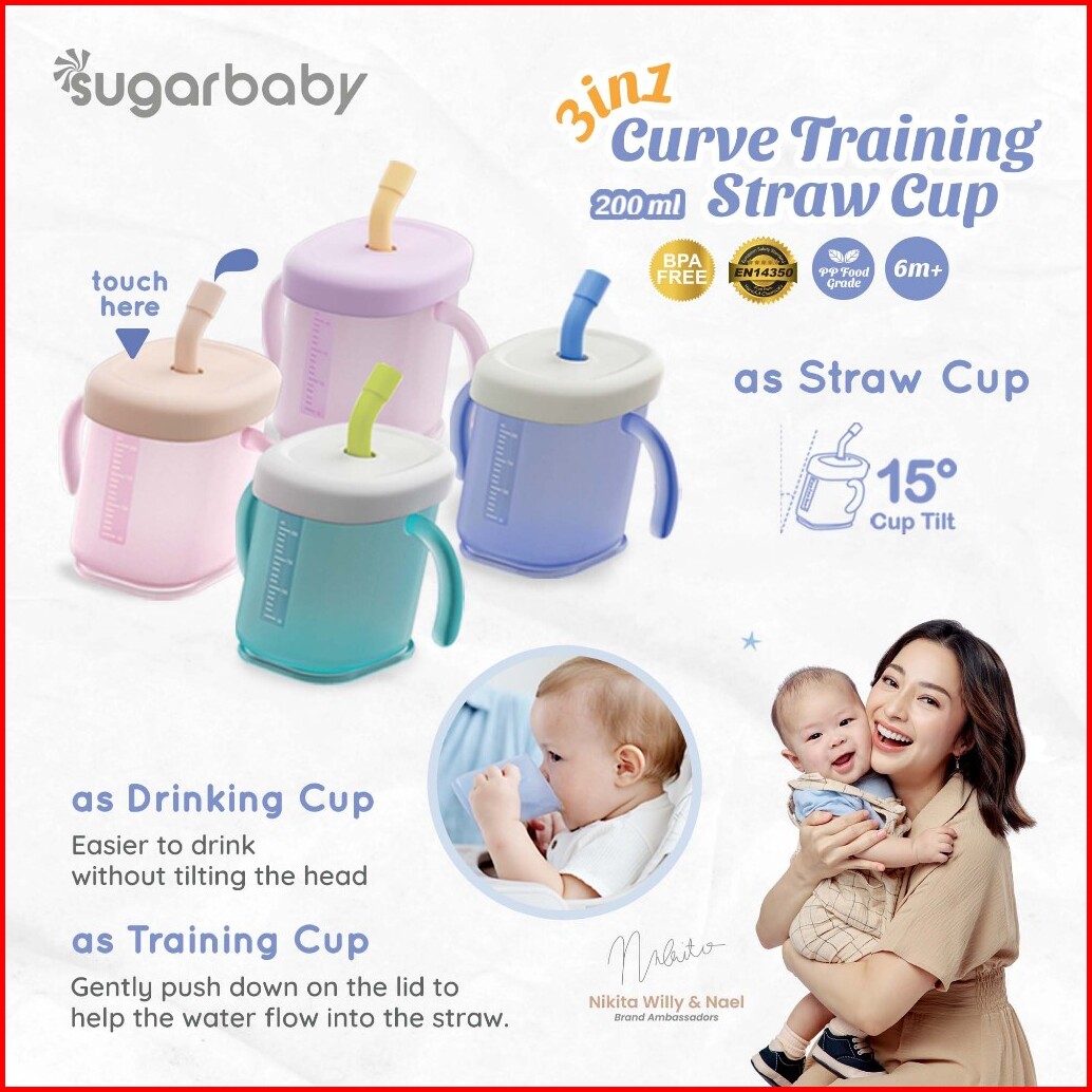 Sugarbaby 3 In 1 Curve Training Straw Cup Gelas Mpasi Bayi Gelas Bayi Anti Tumpah Bocor Training Cup Bpa Free