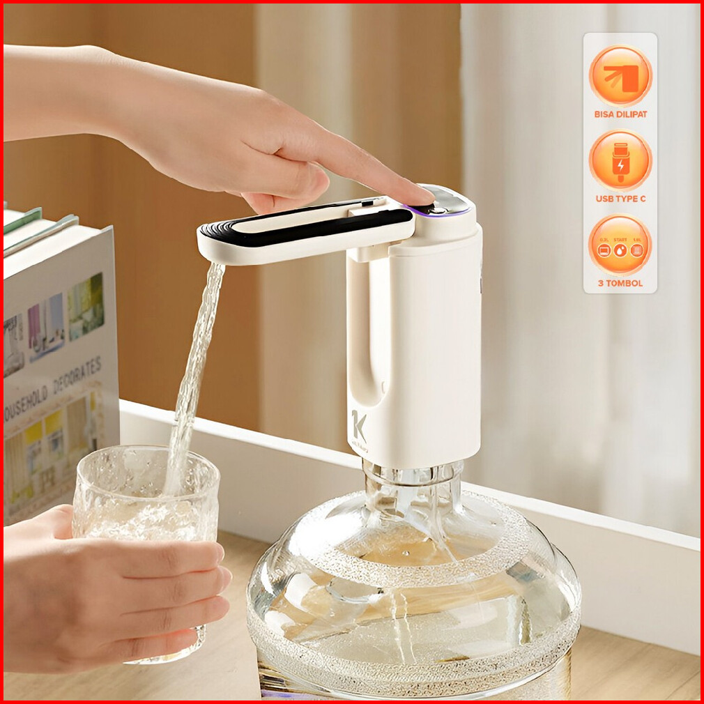Pompa Air Galon Elektrik Lipat 3 Tombol Usb Charge Type C Pompa Galon Flip Water Pump Electric Pompa Dispenser Elektrik
