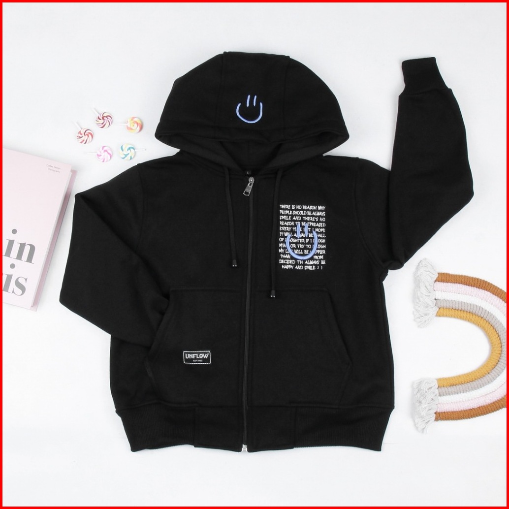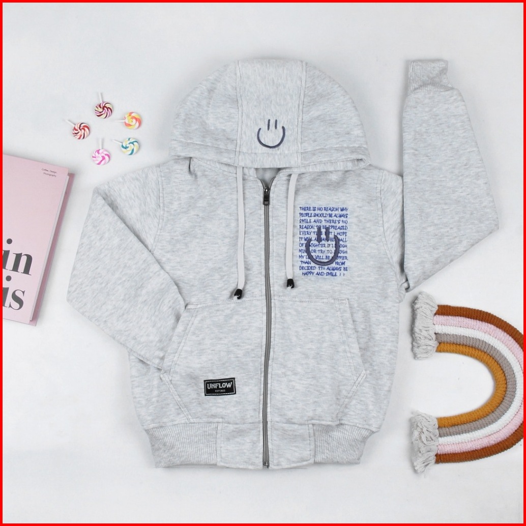 Hoodie Zipper Anak Cowok Cewek Bordir Motif Happy And Smile Bahan Fleece Gramsi Tebal 280