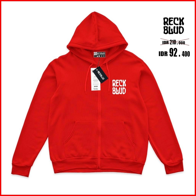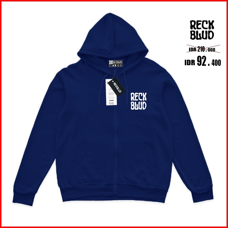 Reckblud - Jaket Zipper Distro Reckblud Atbh Text Putih Jaket Resleting Keren