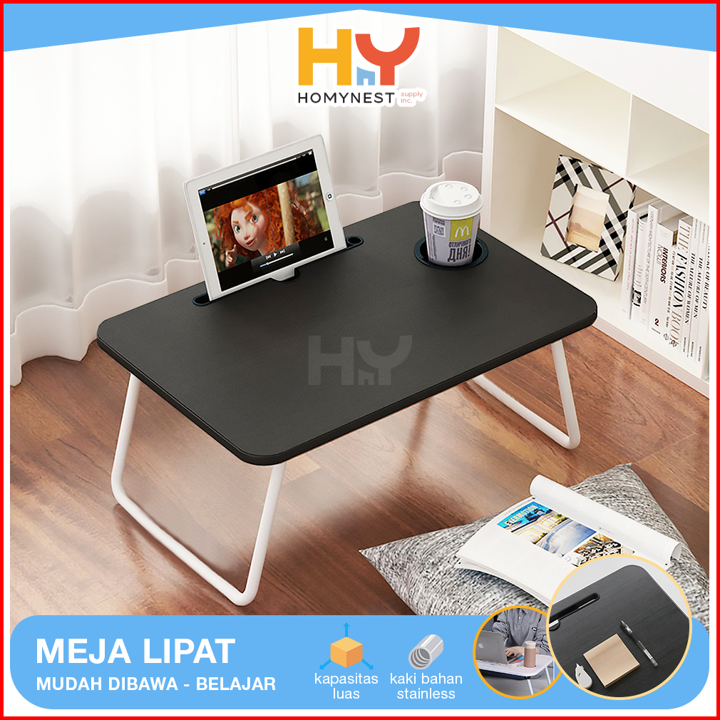 Homynest Meja Belajar Laptop Lipat Portable Kayu Hpl Kaki Besi Kokoh Berkualitas