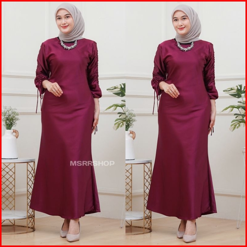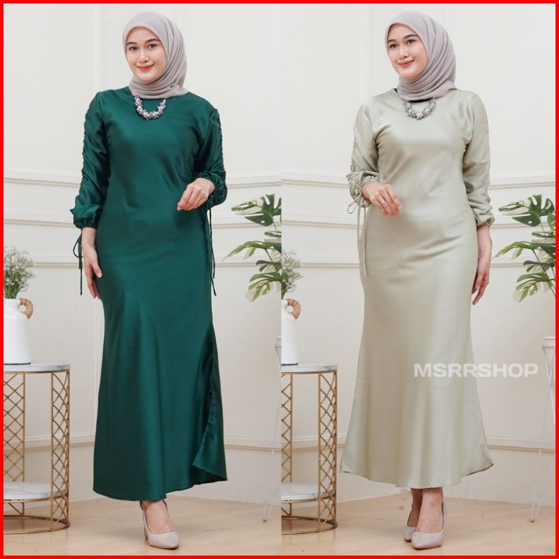 Dress Darla Silk Satin - Dress Kondangan Bridesmaid -dress Satin Lengan Kerut