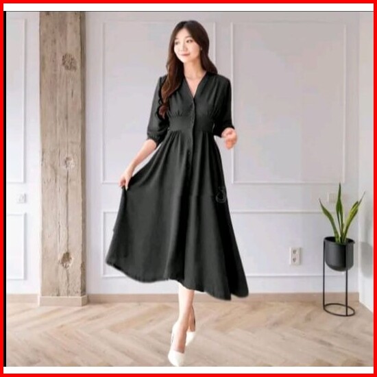 Korean Dress Crinkle Premium Wanita Casual Elegan Adem Ringan