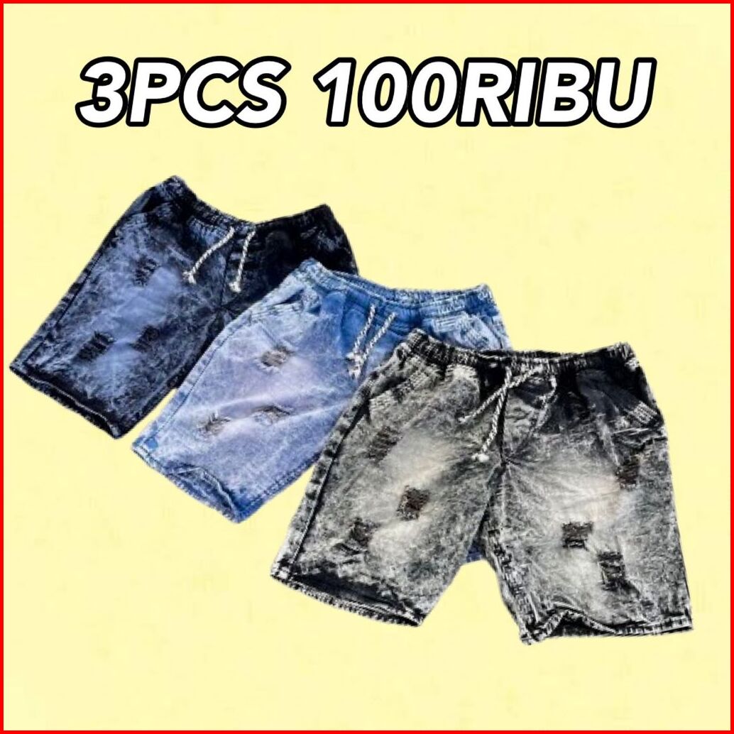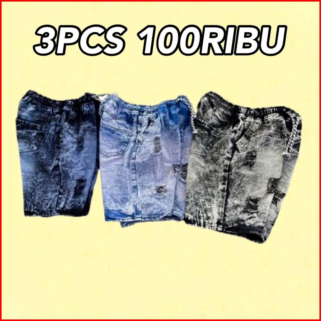 3pcs 100ribu Celana Pendek Pria Motif Sobek Celana Jeans Denim Pendek Di Atas Lutut Celana Pendek Distro Terlaris