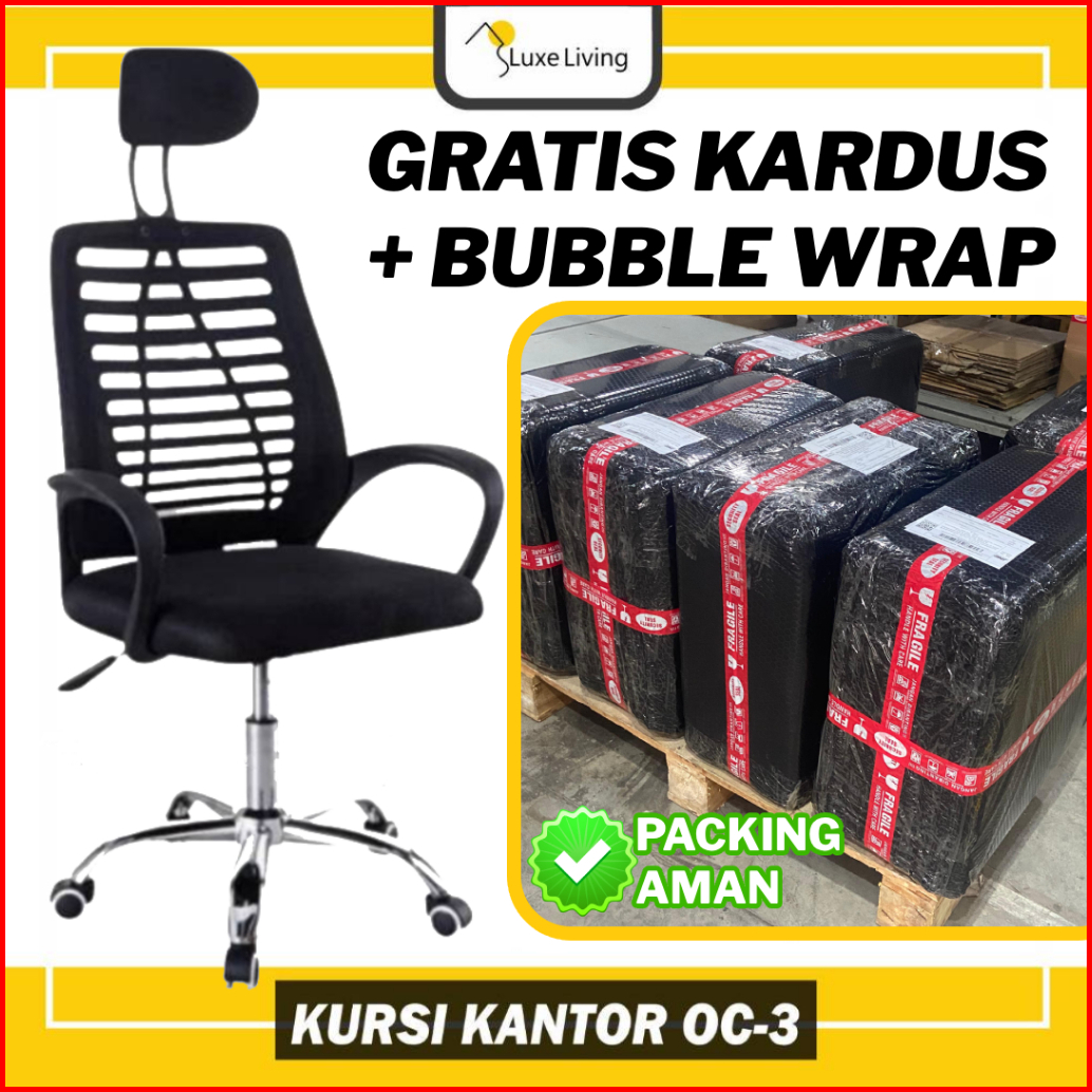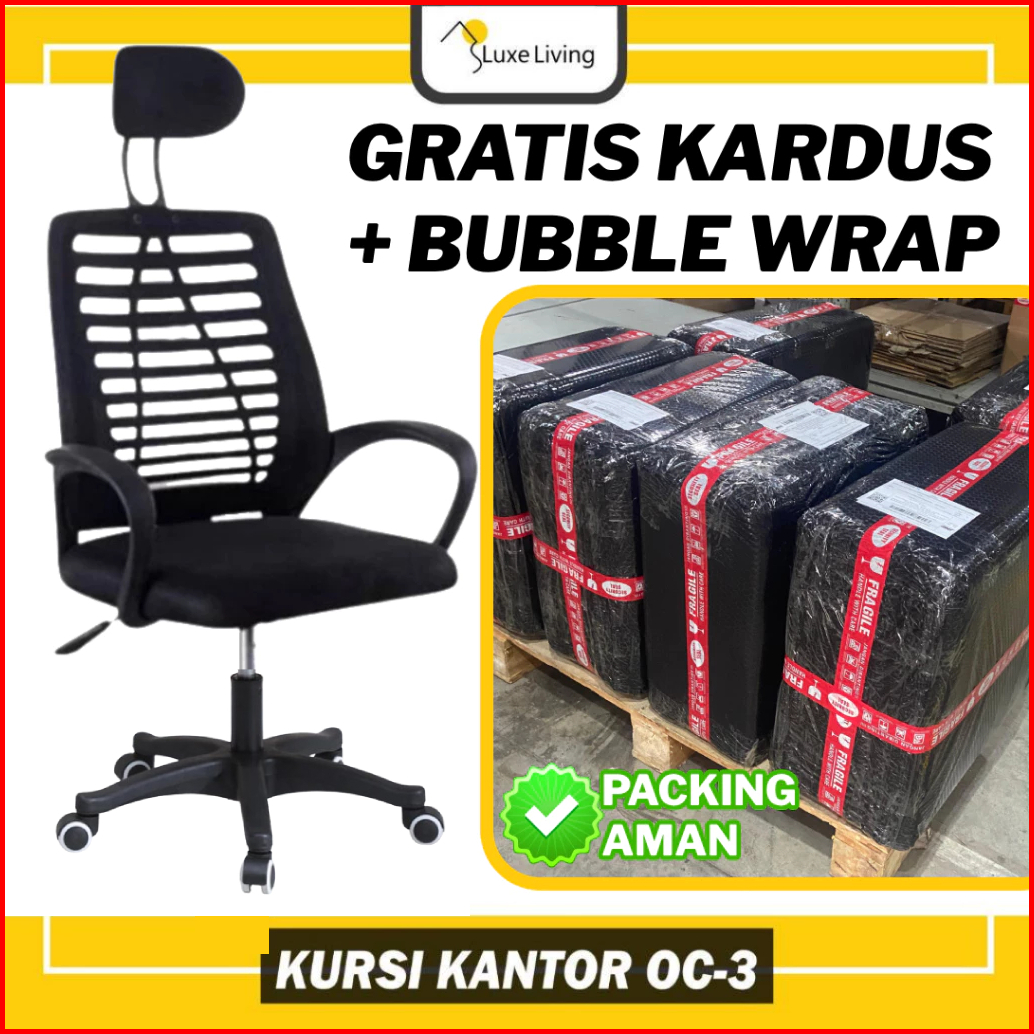 Free Bubble Wrap Kursi Kantor Kerja Belajar Ergonomis Putar Hidrolik Kursi Boss Staff Jaring Oc-1