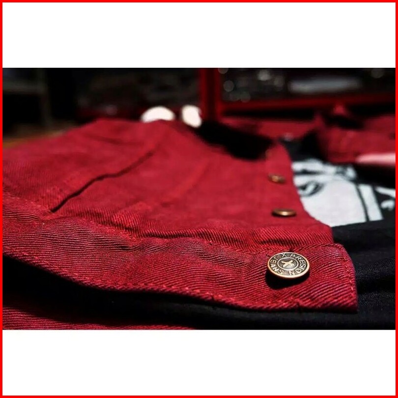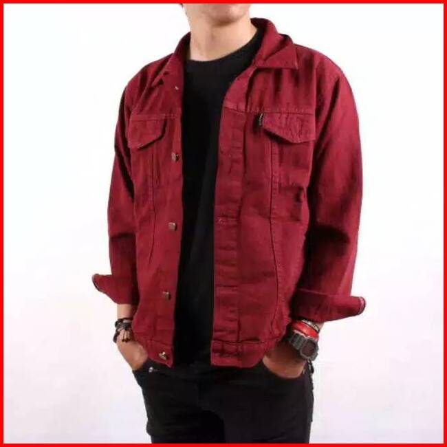 Jaket Jeans Denim Casual Pria Jaket Jeans Best Seller Jaket Jeans Bigsize - Maroon