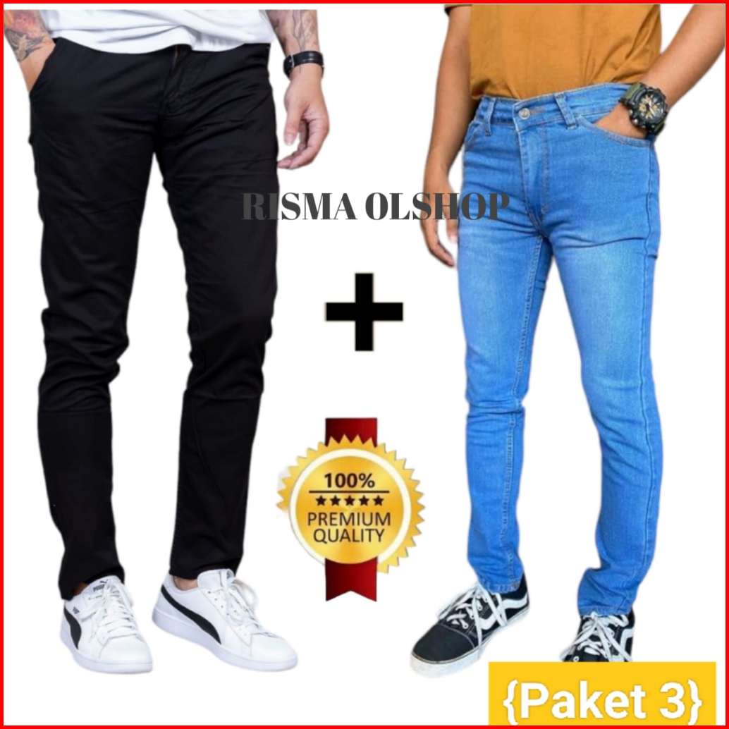 Promo Paket Hemat Beli 1 Gratis 1 Dapat 2 Pcs Celana Jeans Pria Panjang Pensil Slimfit Skiny Melar
