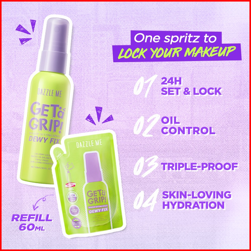 Best Deals Dazzle Me Get A Grip Makeup Setting Spray Dewy Fix Refill - Setting Spray Makeup Tahan Lama Flawless Melembab