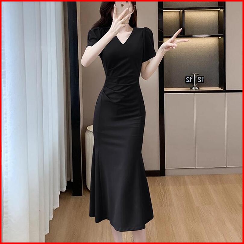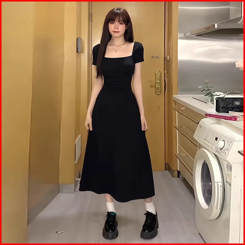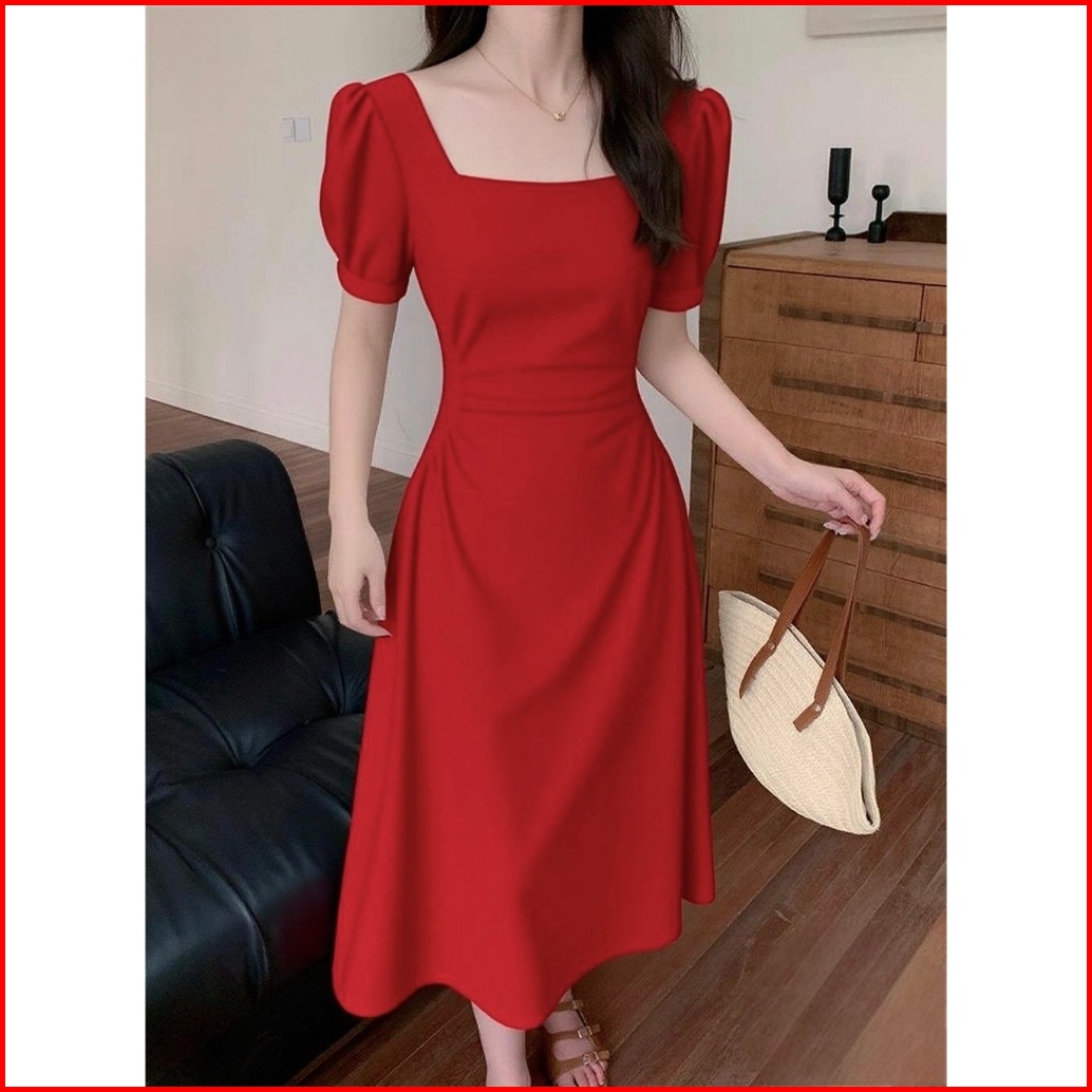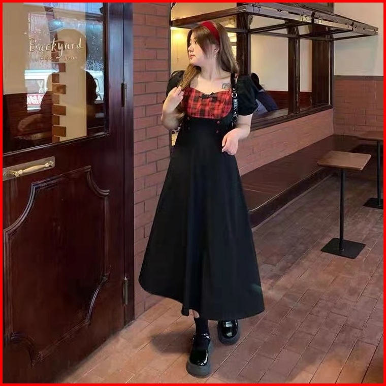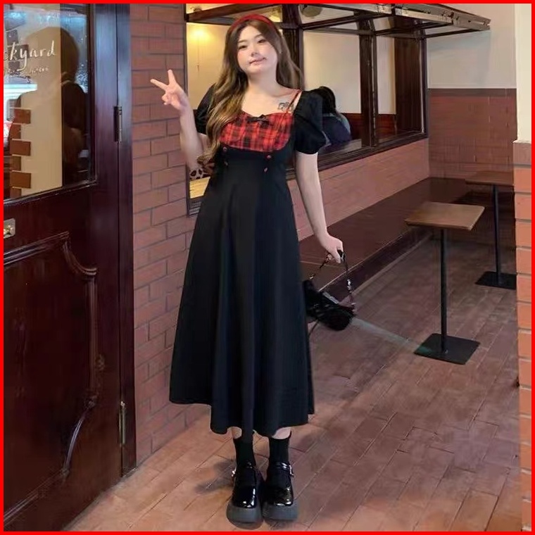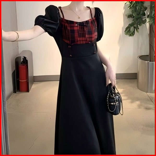Red Dress Korean Style Hitam Mewah Elegan Terbaru 2025 Dress Kotak Kotak Wanita Kekinian Casual Dress Pesta Remaja Frenc