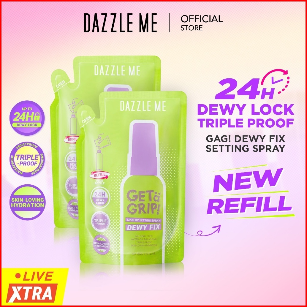 Dazzle Me Get A Grip Makeup Setting Spray Dewy Fix Refill - Setting Spray Makeup Tahan Lama Flawless Melembabkan Kulit 2