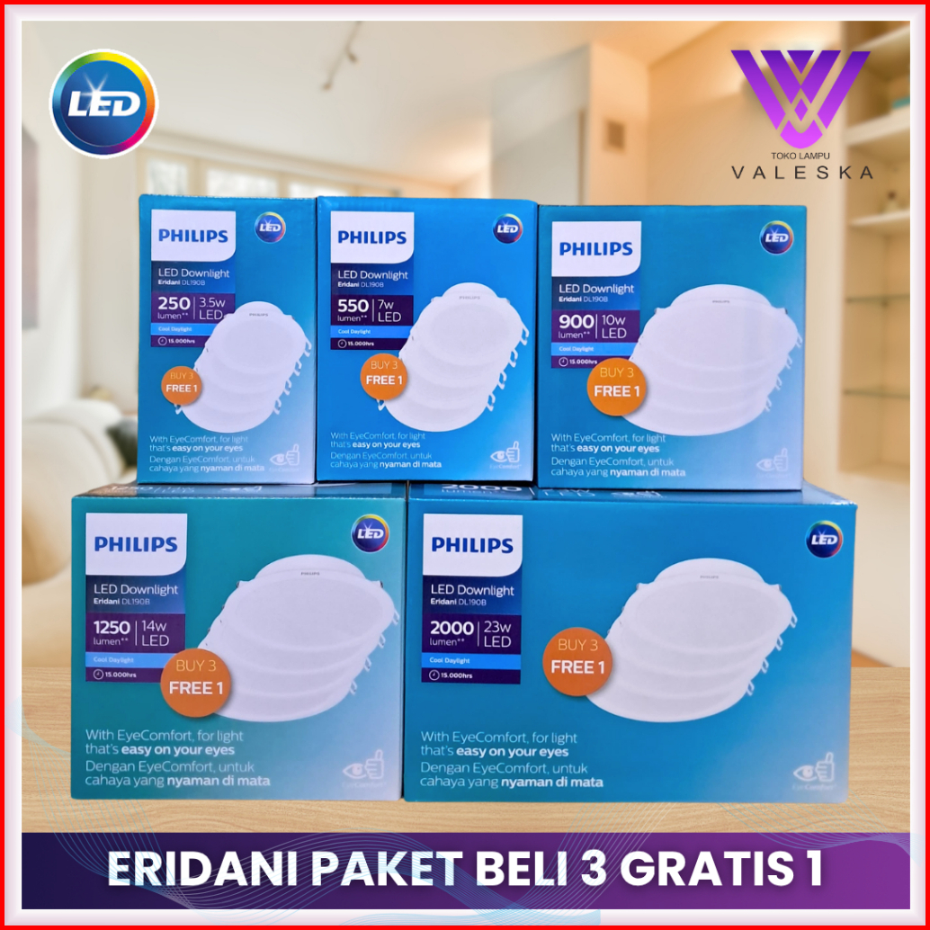 Philips Downlight Eridani Paket Beli 3 Gratis 1 Kemasan Multipack 3.5w 7w 10w 14w 23w Putih