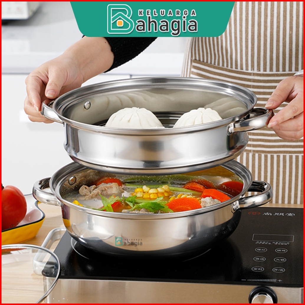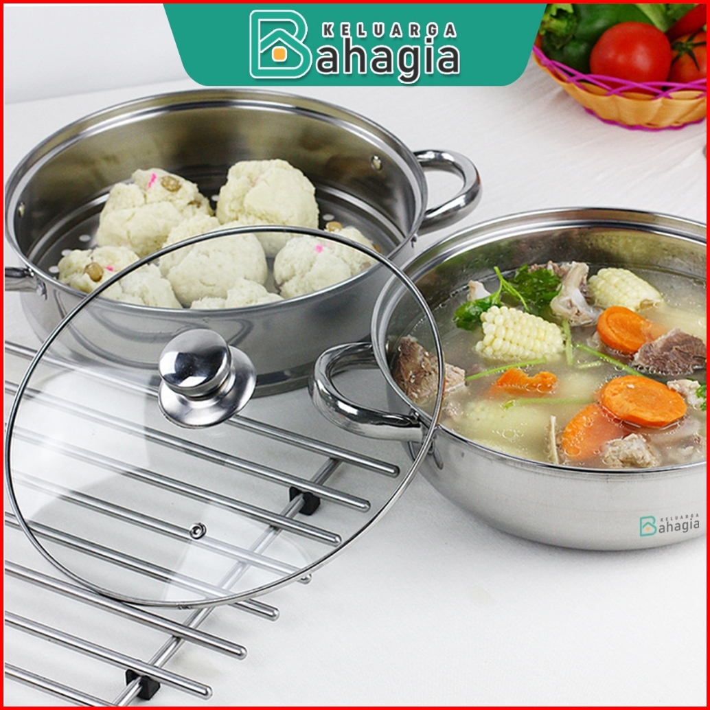 Yatt By Kb Panci Sup Steamer 3in1 Uk 28cm Stainless Steel Tutup Kaca 2 Tingkat Kukusan Multifungsi