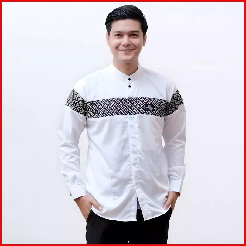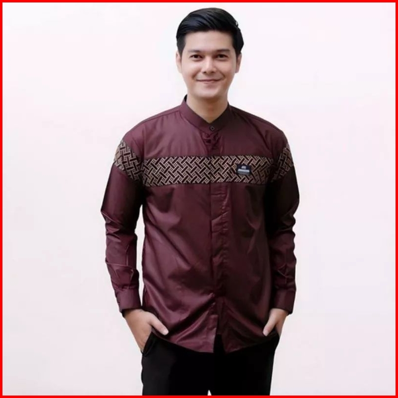 Baju Koko Dewasa Lengan Panjang Motif Kobata Qynang Kombinasi Batik Baju Muslim Dewasa