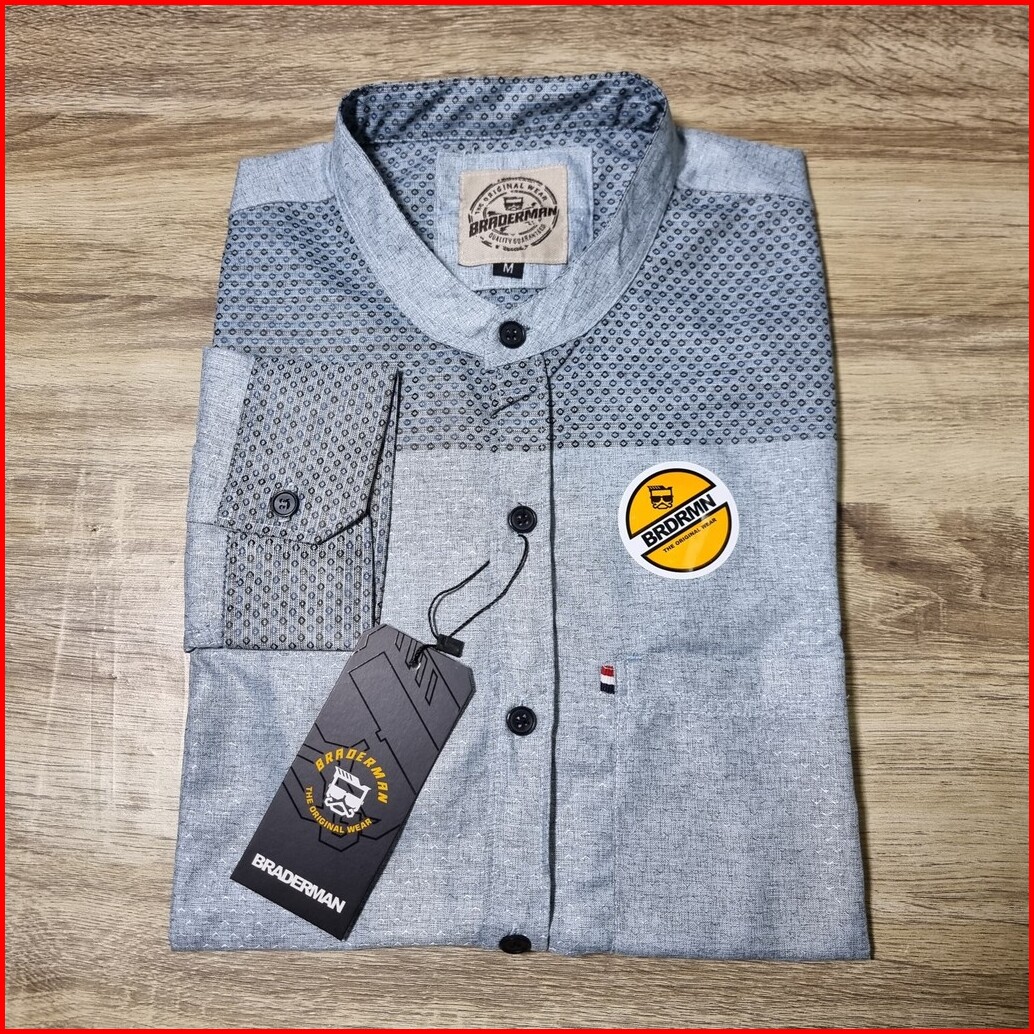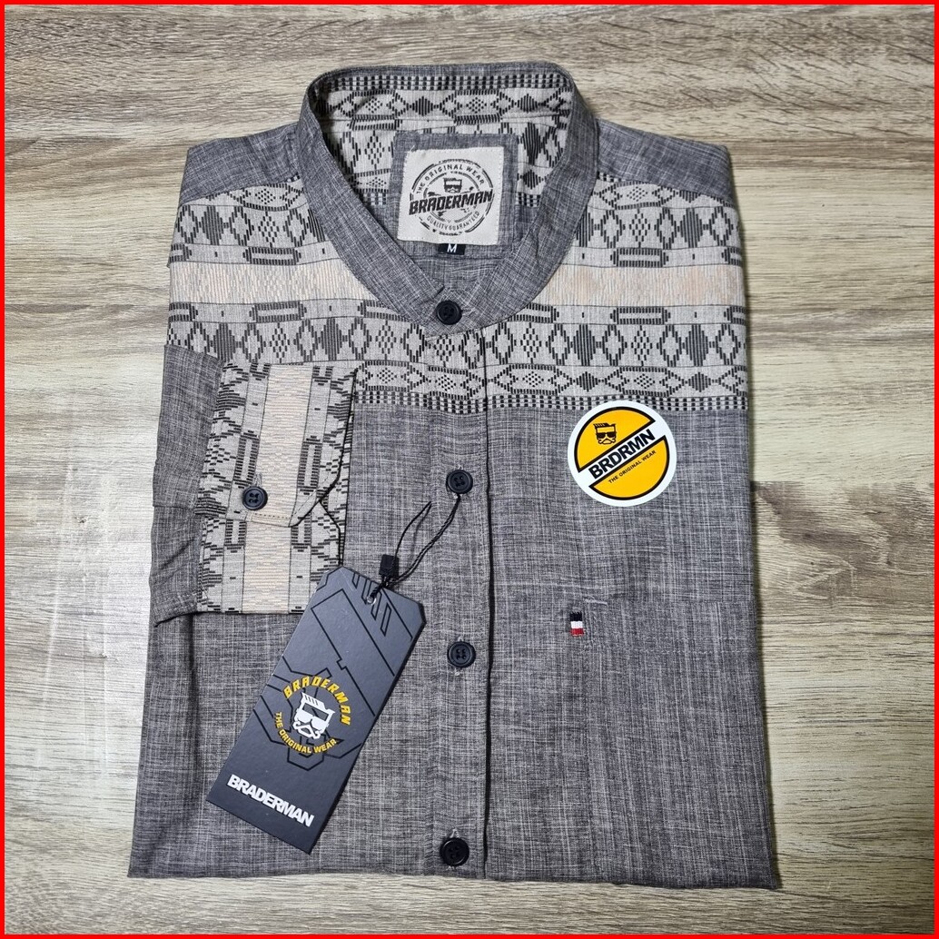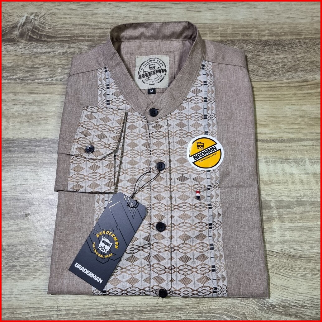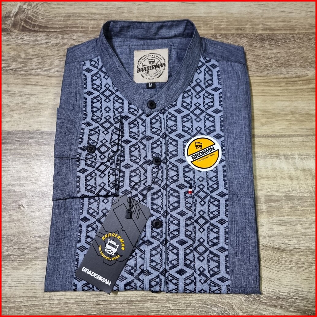 Baju Kemeja Koko Kemko Pria Motif Songket Lengan Panjang Kerah Shanghai Fashion Muslim Casual Slim