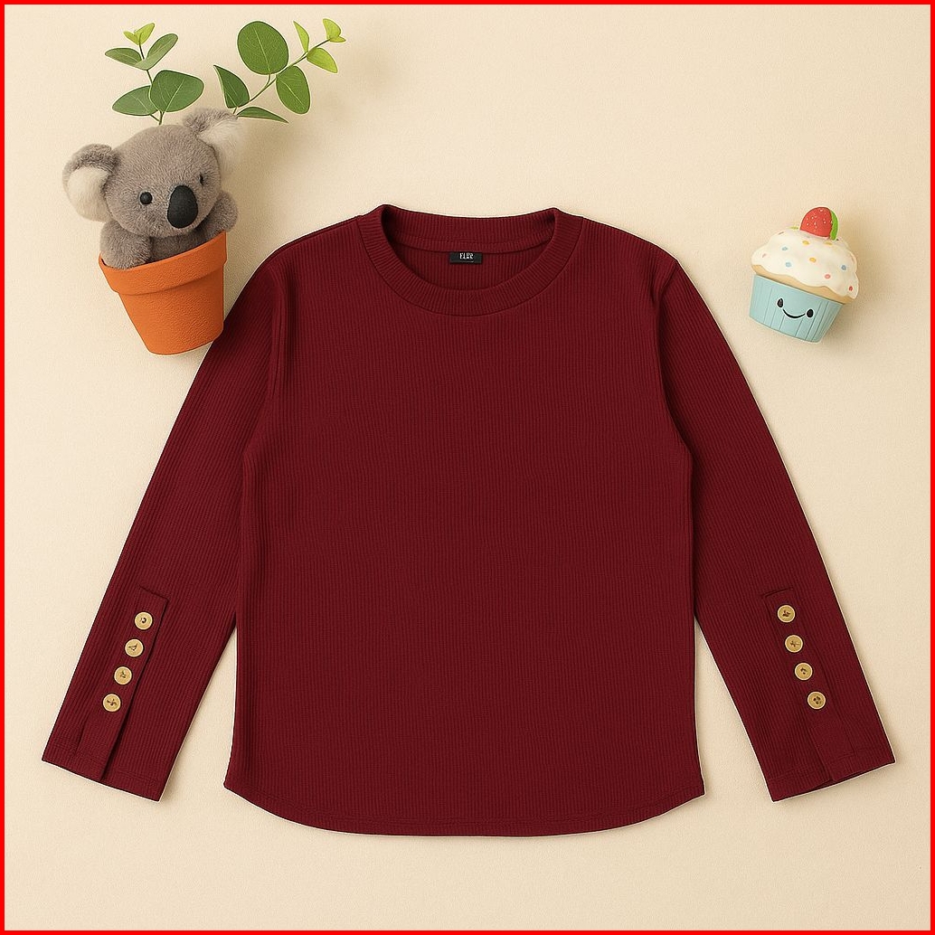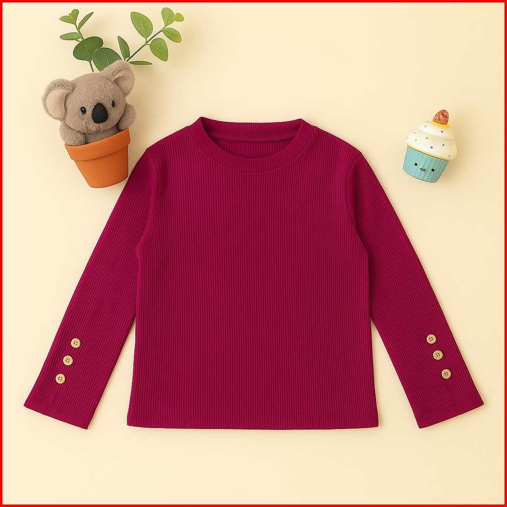 Hyena Top Atasan Anak Perempuan Usia 1-12 Tahun Bahan Knit Lengan Panjang Motif Polos Kancing