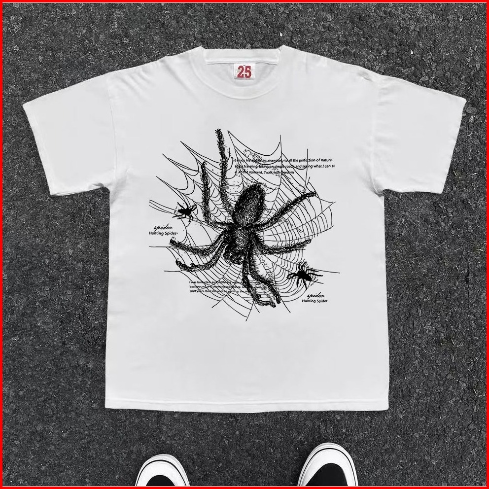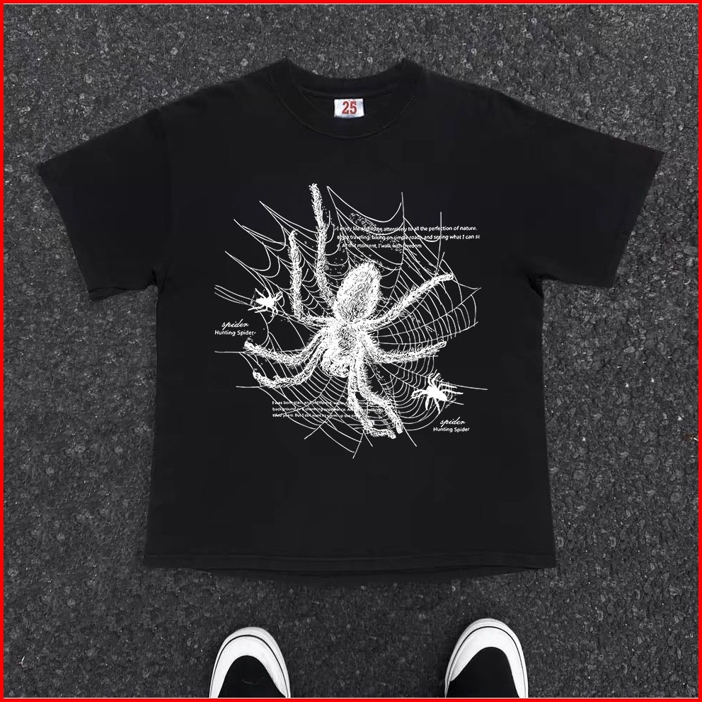 Boombap American Retro Style T-shirt Oversize Laba-laba Menenun Jaring Kaos Wanita Hitam Kaos Pria Dan Wanita Street Sty