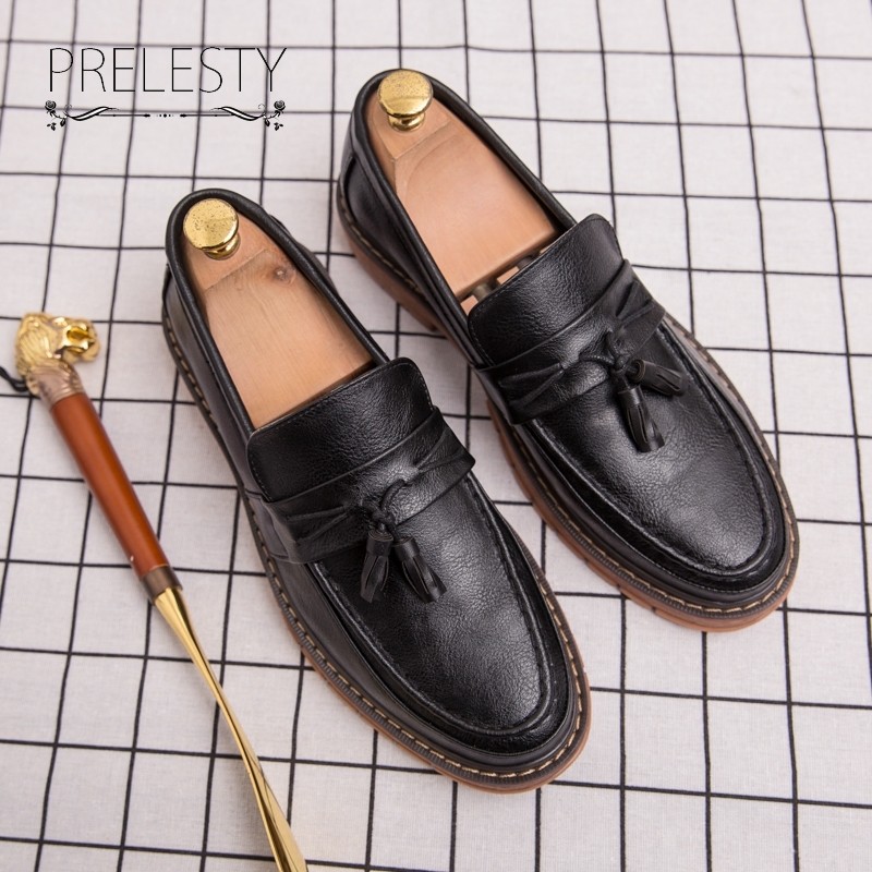 [Star] Fashion Modern Gaya Sepatu Pria Tassel Loafer Original Kulit Sepatu Pantofel Santai Formal Kerja Kantor Kekinian