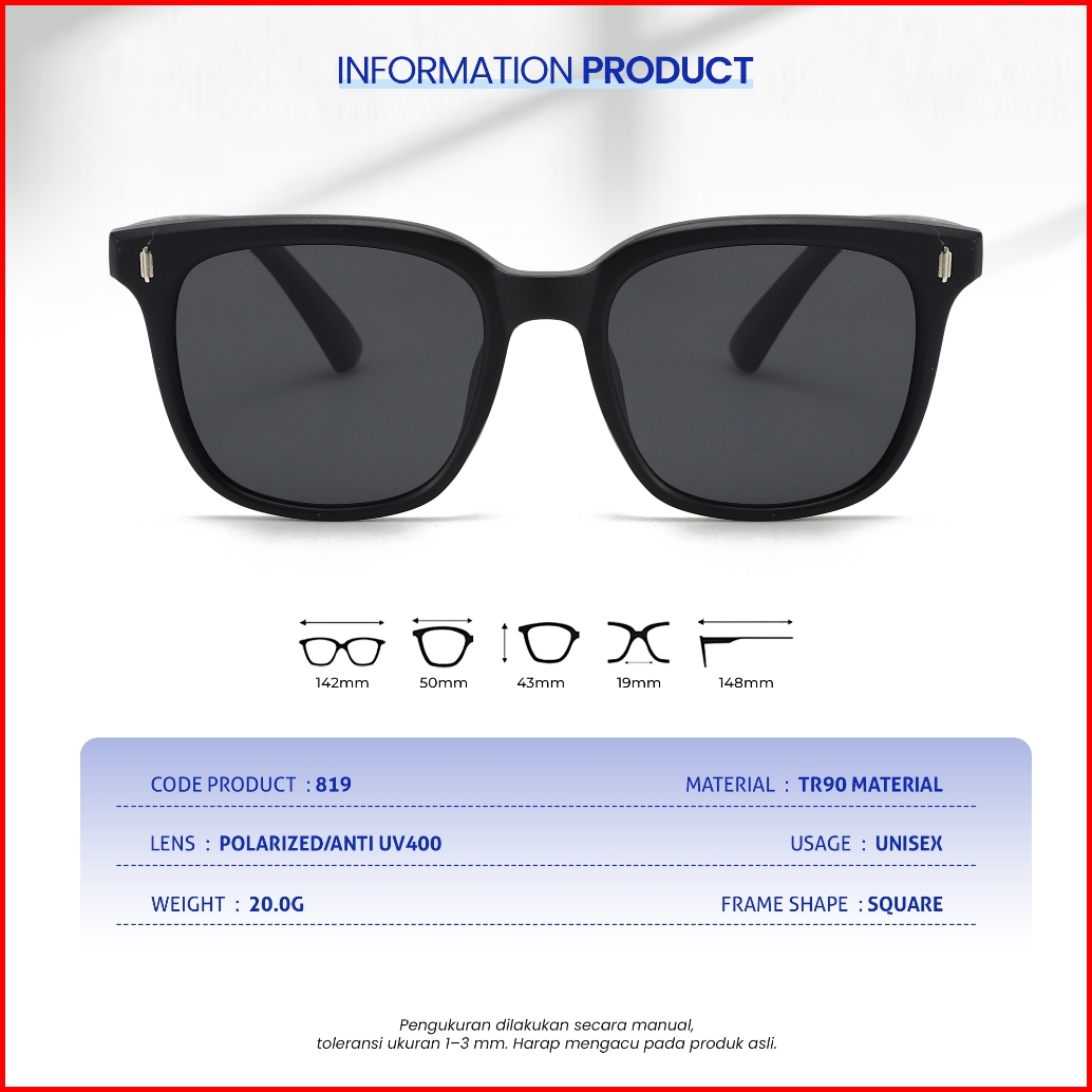 Pullais Eyewear Kacamata Hitam Uv Protection Polarized Pria Wanita Kotak Tr-90 Trendy Sunglasses 819