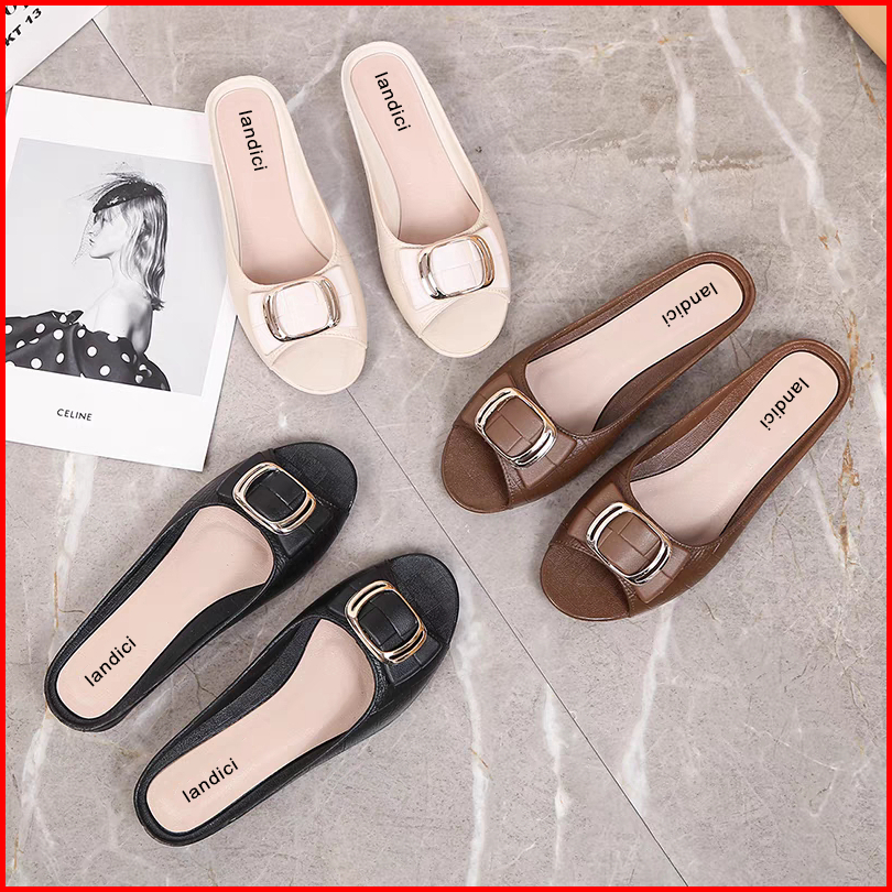Voova Sandal Wanita Fashion Women Single Shoes Sendal Flat Slop Anti Slip