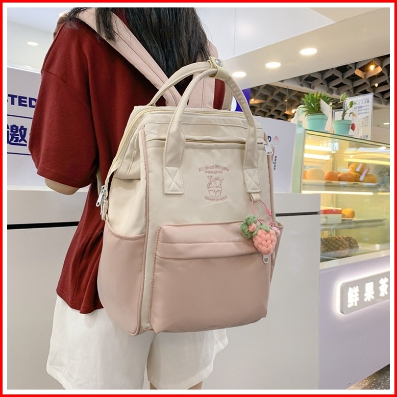 Stroberi Gratis Lucu Tas Sekolah Korean Style Tas Ransel Wanita Backpack Remaja Anak Korea Fashion Tas Laptop Wanita