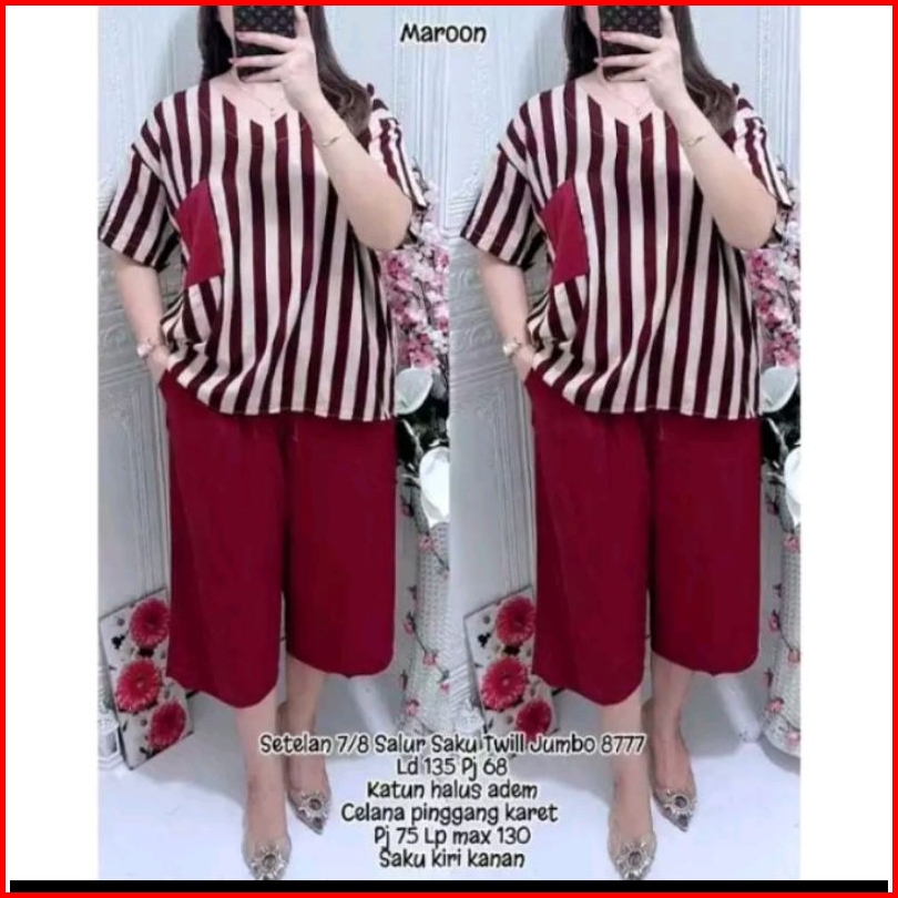 Setelan Andin Kantong Semi Rayon Salur Kombinasi Polos Kantong Setelan Baju Celana Katun Salur Kombinasi Kekinian Setela