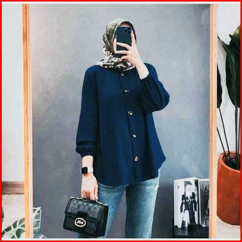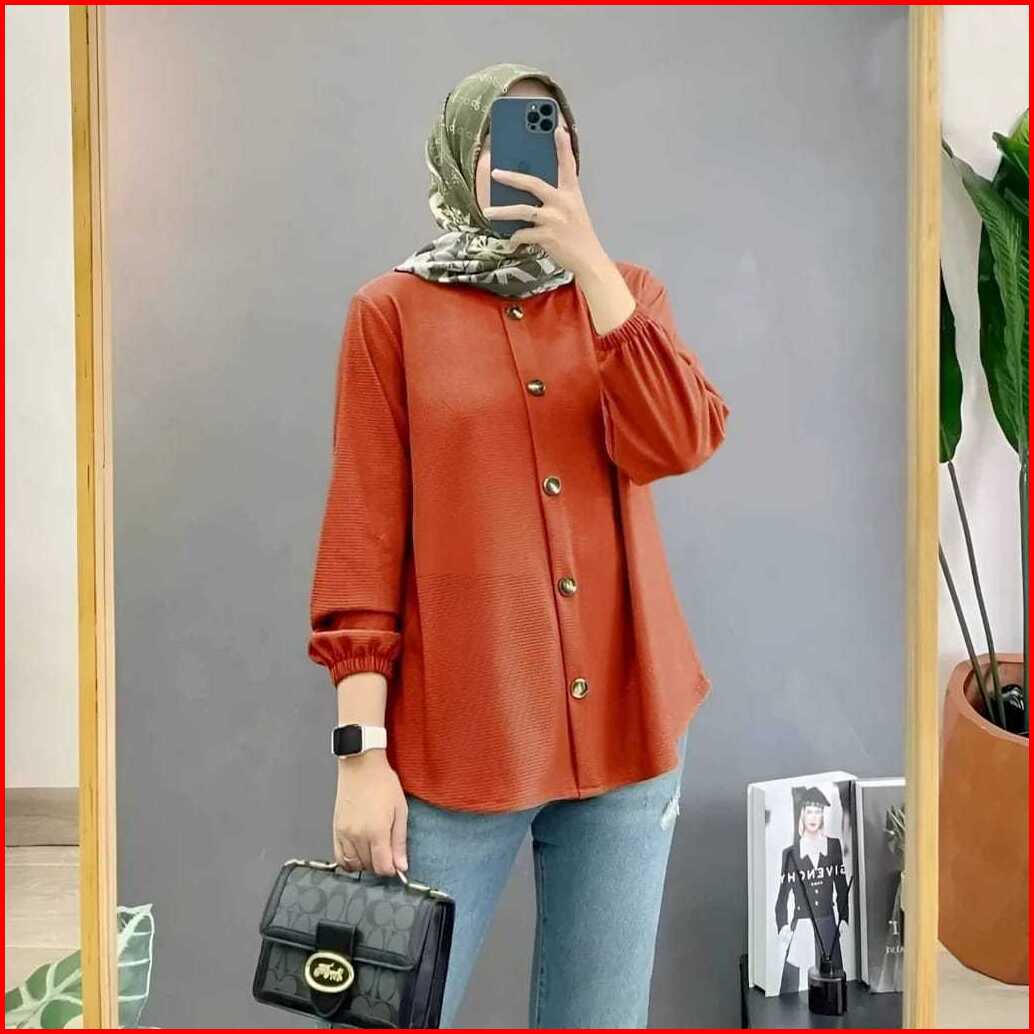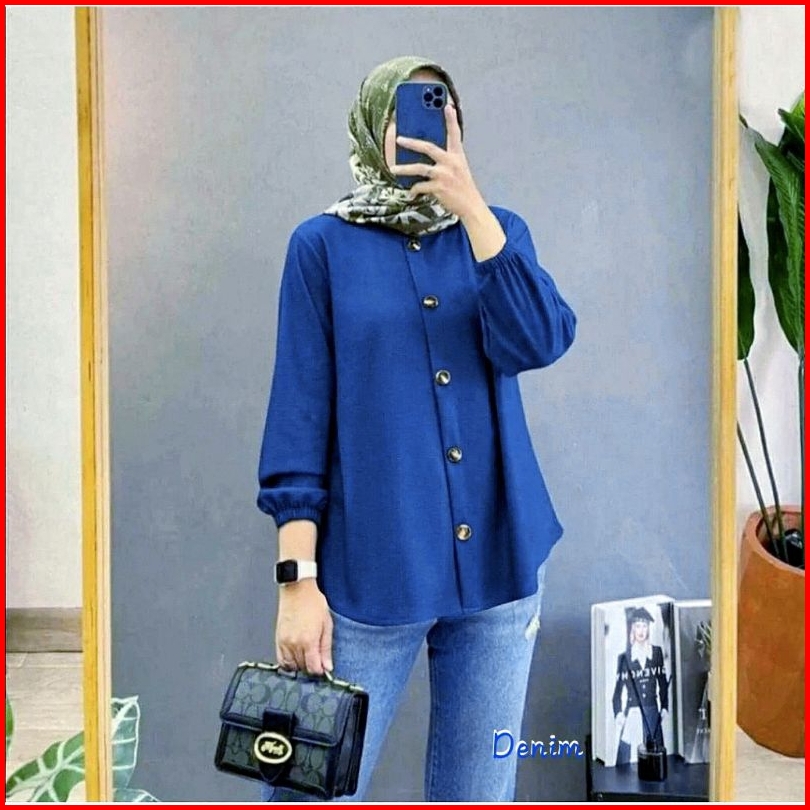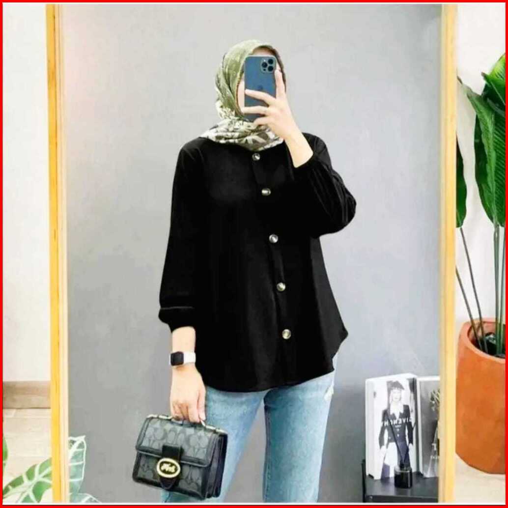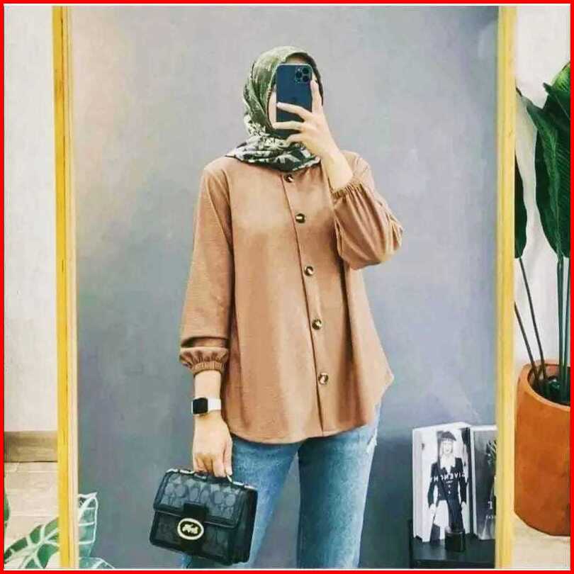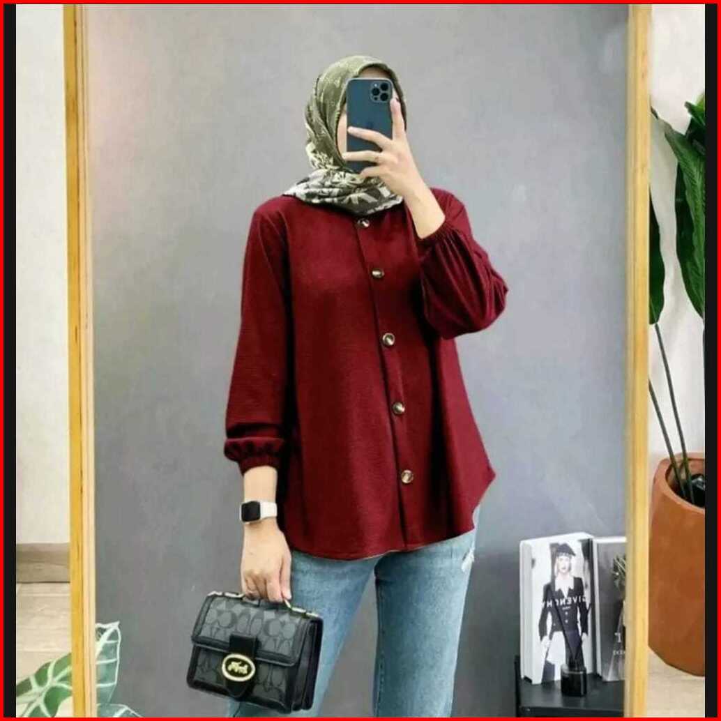 Blouse Wanita Jumbo Kemeja Terbaru Atasan Lengan Karet Baju Kantor Kekinian 2024
