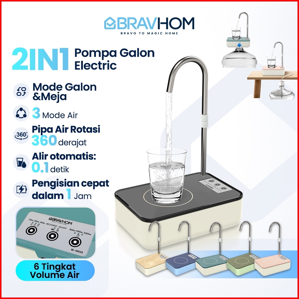 Bravhom Pompa Air Galon Elektrik 2in1 Pompa Galon Dispenser Air Rumah Dan Luar Ruangan Bl-wd13