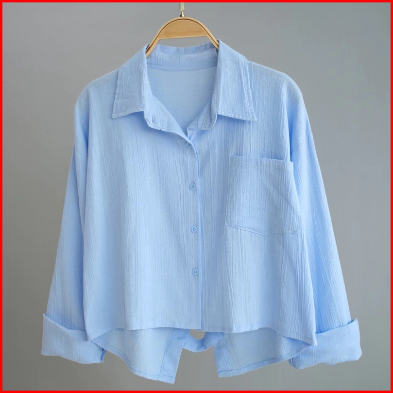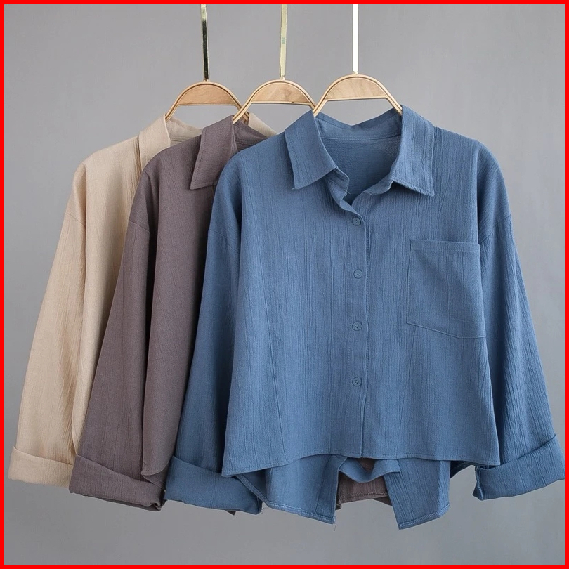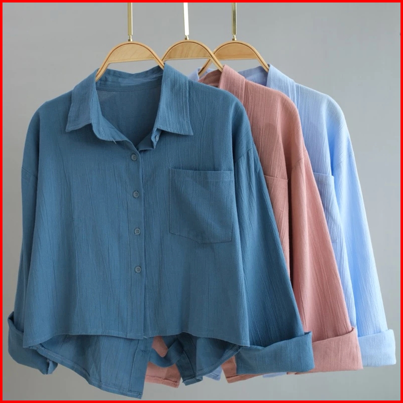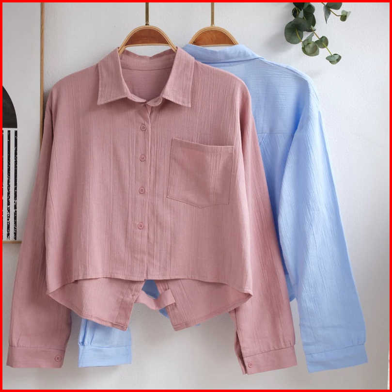 Kemeja Crop Top Wanita Korean Style Lengan Panjang Jumbo Oversize Kekinian