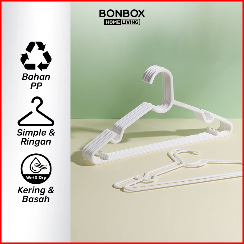 Bonbox Homeliving - 10 Pcs Gantungan Baju Hanger Warna Putih Bahan Plastik Pp Bch10