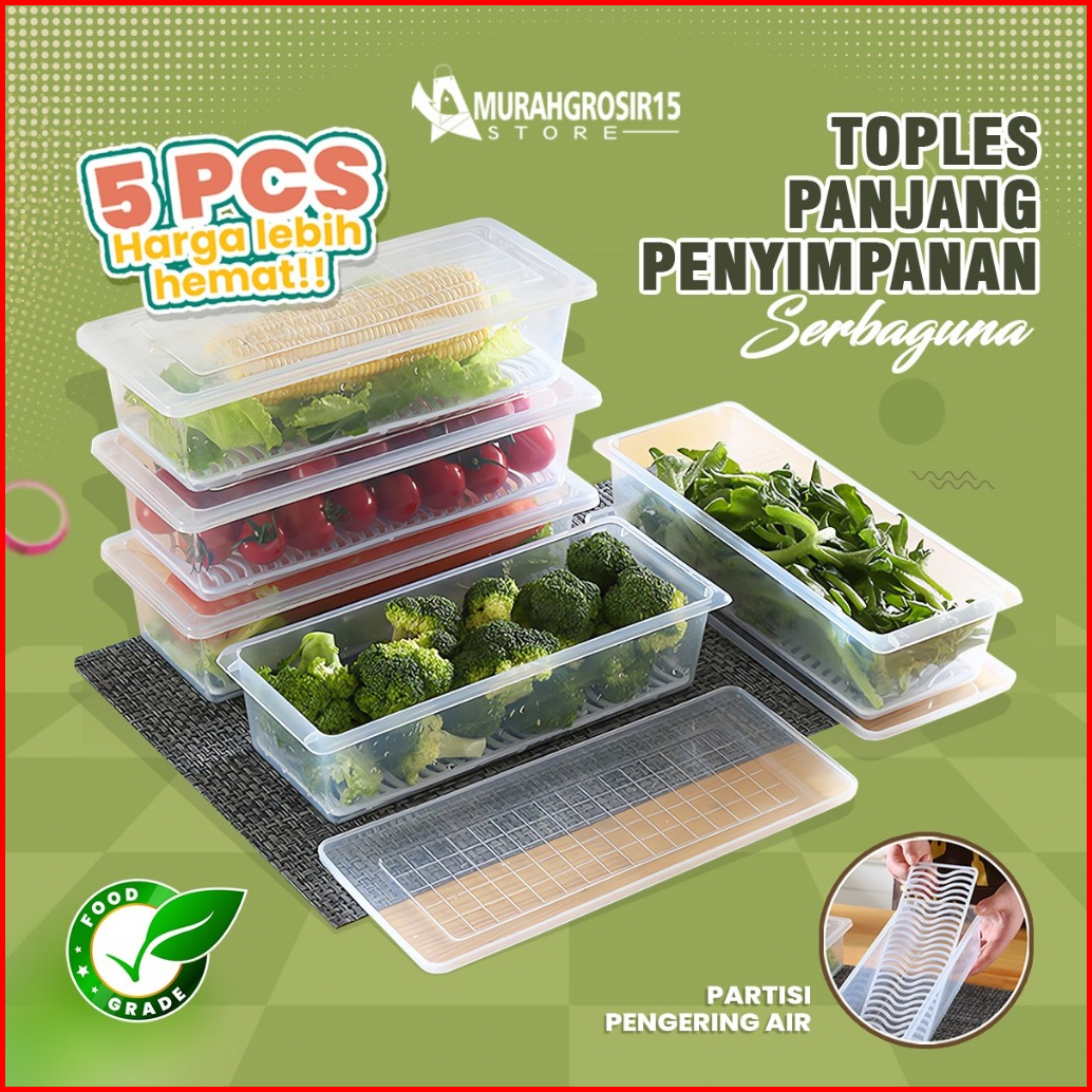 Set Isi 5pcs Toples Panjang Serbaguna Food Grade Wadah Penyimpanan Spaghetti Mie Ikan Snack Makanan Sayur Ikan Serbaguna