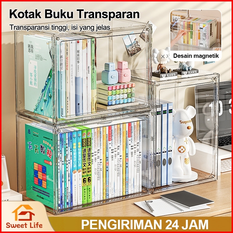 Sweet Life Kotak Penyimpanan Buku Kotak Penyimpanan Transparan Kotak Display Akrilik Rak Buku Desktop