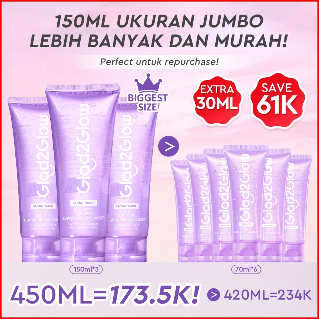 Big Size Glad2glow Blueberry Ceramide Low Ph Gel Cleanser 150ml Facial Wash Skincare Face Wash Sabun Cuci Muka Cleansing