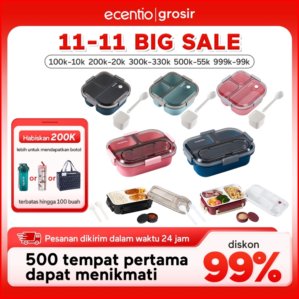 Anti Tumpah Ecentio 3 Grid Lunch Box 1100ml 100ml Kotak Makan Anti Tumpah Bento Food Container Bpa Free Toples Plastik W