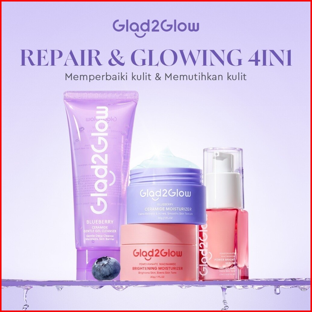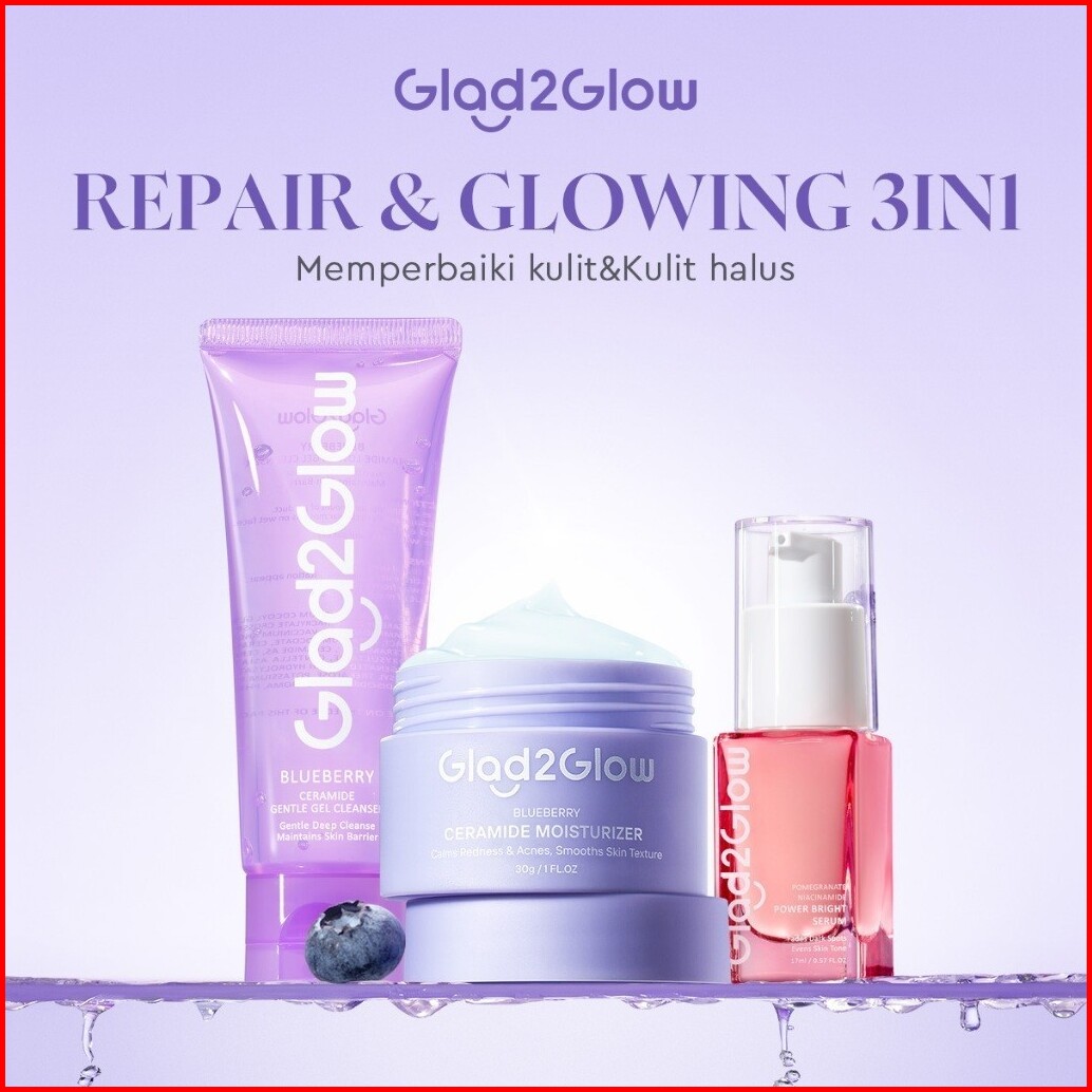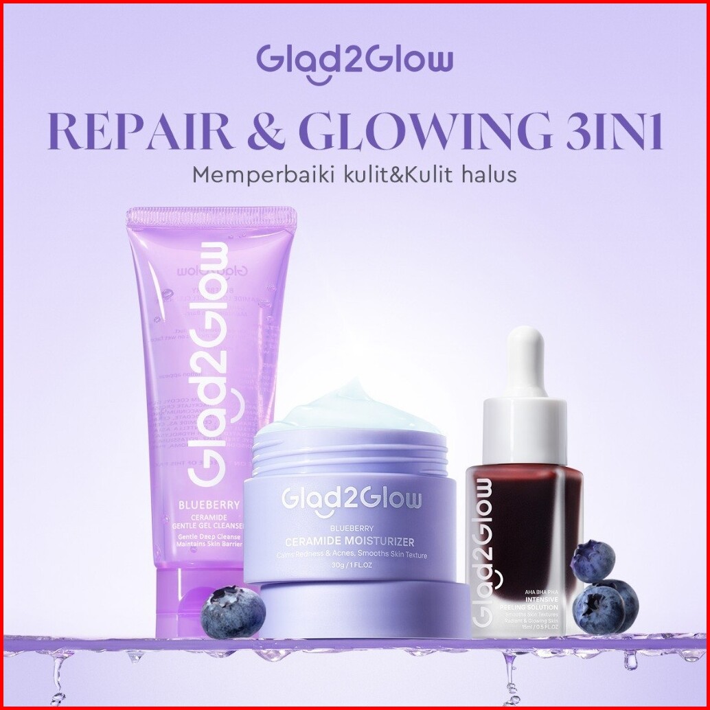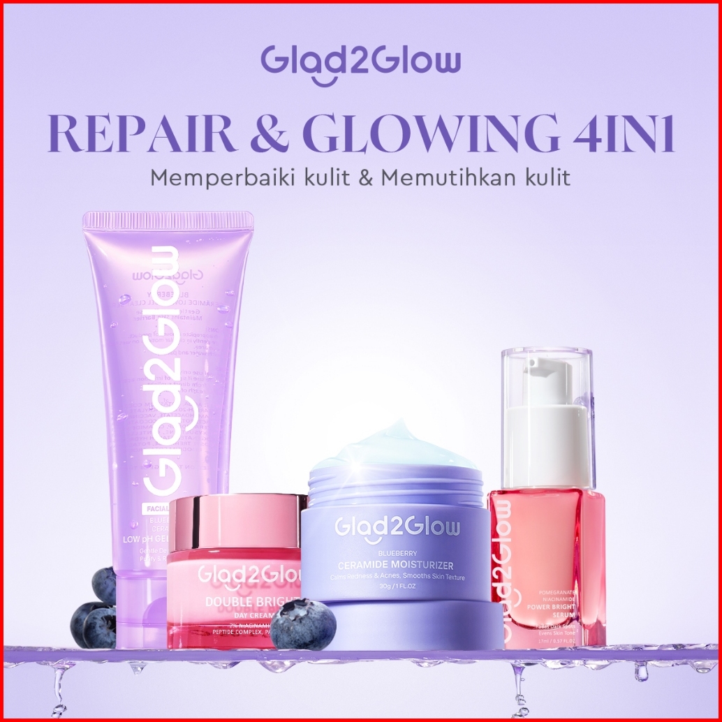 Set Repair Glowing Glad2glow Glowing Sehat Lembap Bundle 4in1-blueberry Moisturizer Cerah Krim Brightening Serum Pulihka