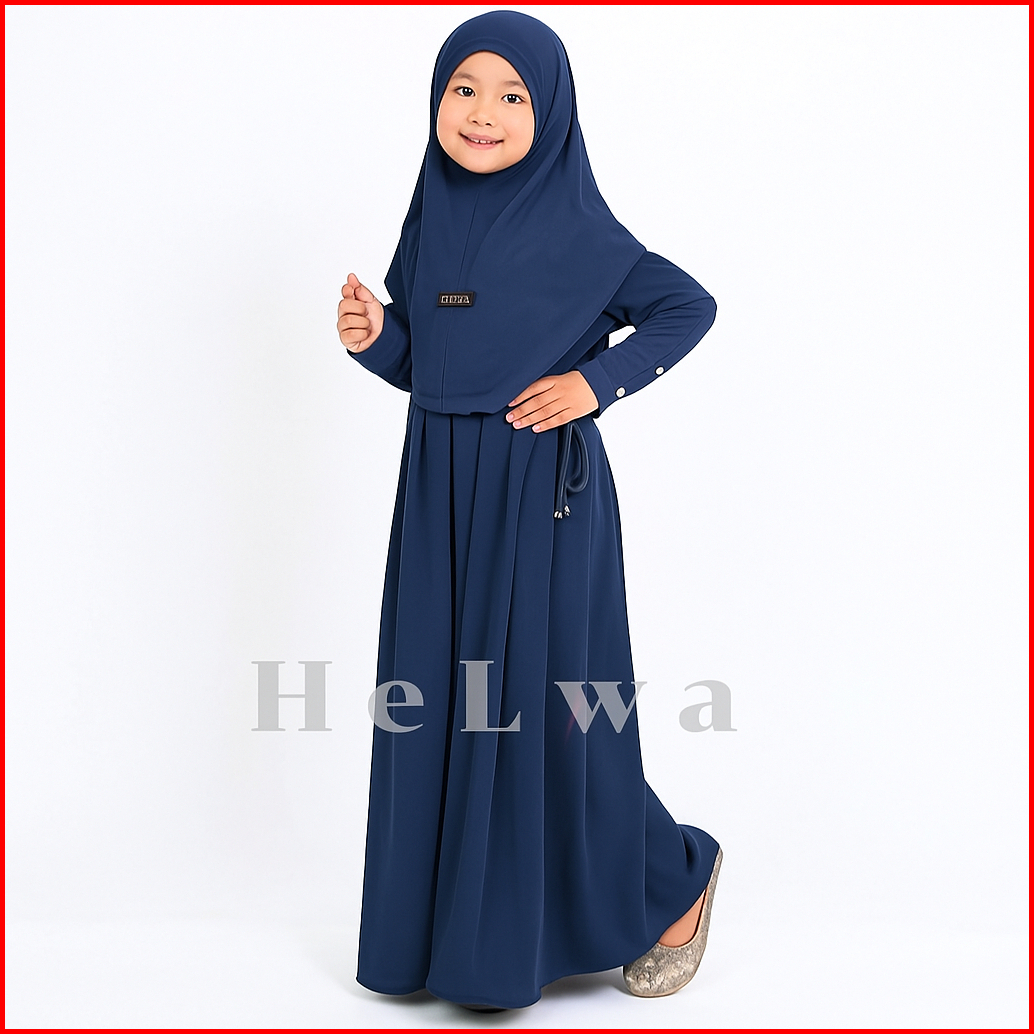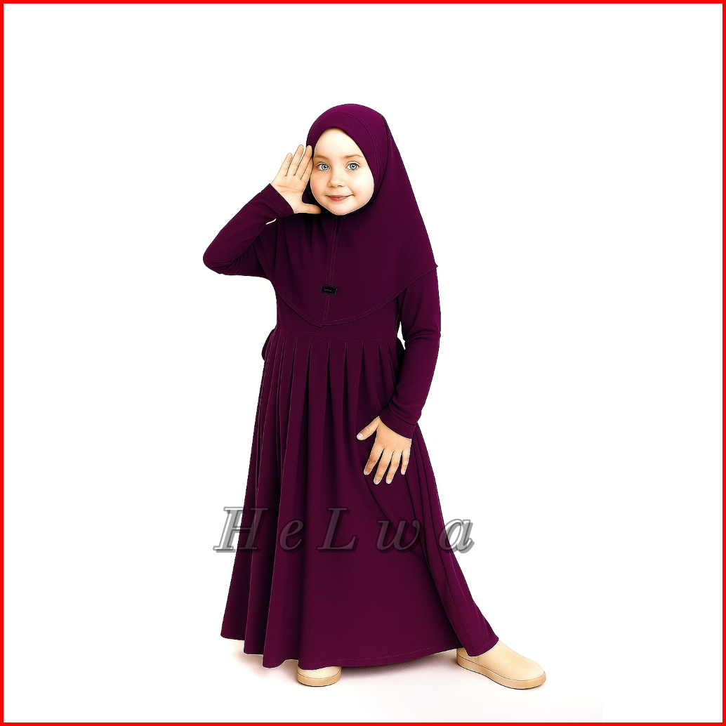 Gamis Abaya Vilia Set Hijab Gamis Anak Serut Pinggang Bahan Jersey Premium Usia 1-10 Tahun
