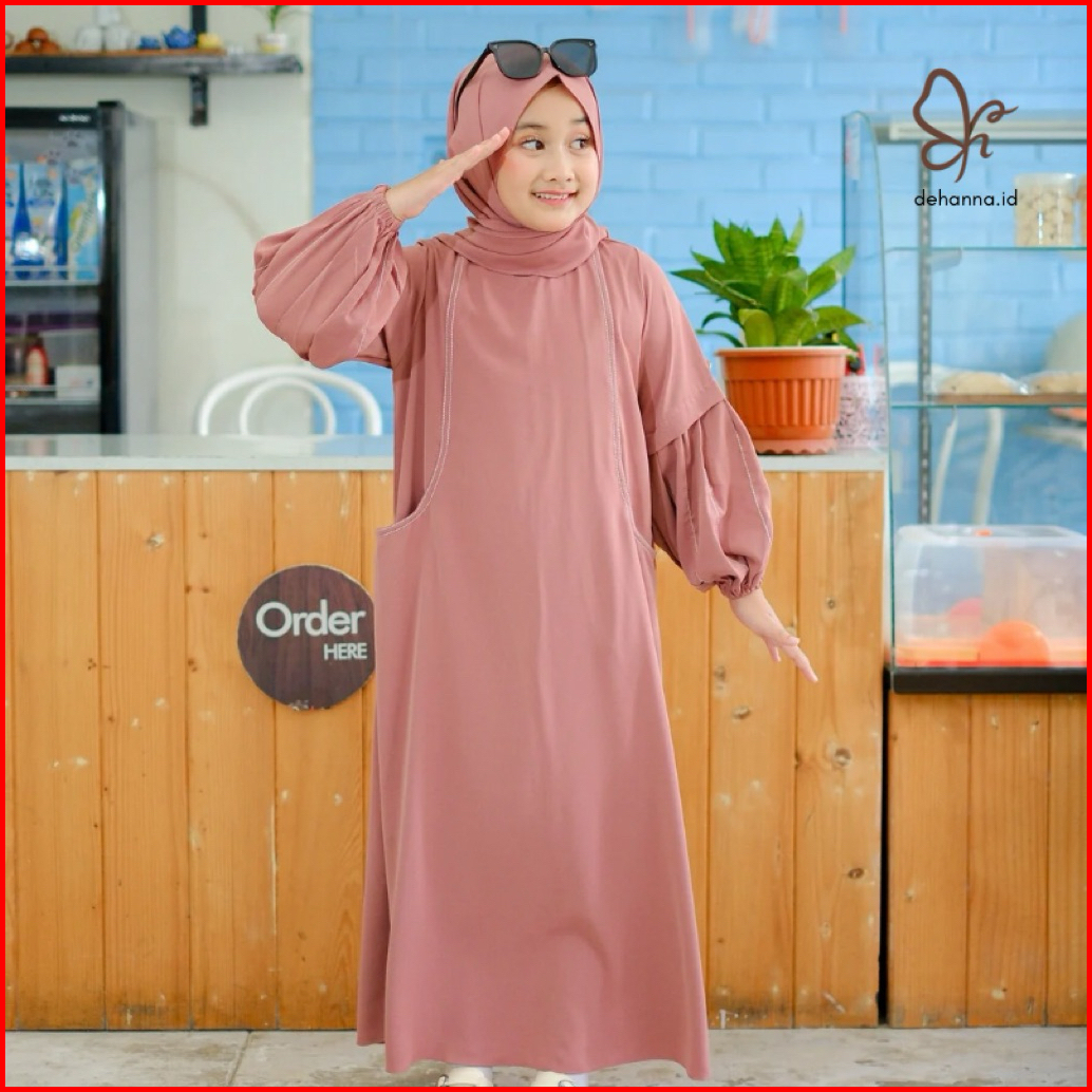 Abaya Anak Prempuan Bisa Couple Ibu Anak Set Hijab Pashmina Bahan Marina Silk Anti Uv 1-12 Tahun