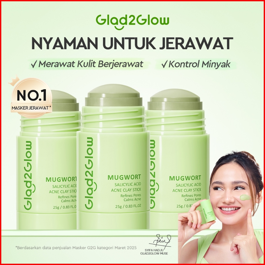Glad2glow Mugwort Salicylic Acid Acne Clay Stick Masker Wajah Masker Jerawat Masker Acne Masker Stick Glad2glow Clay Sti