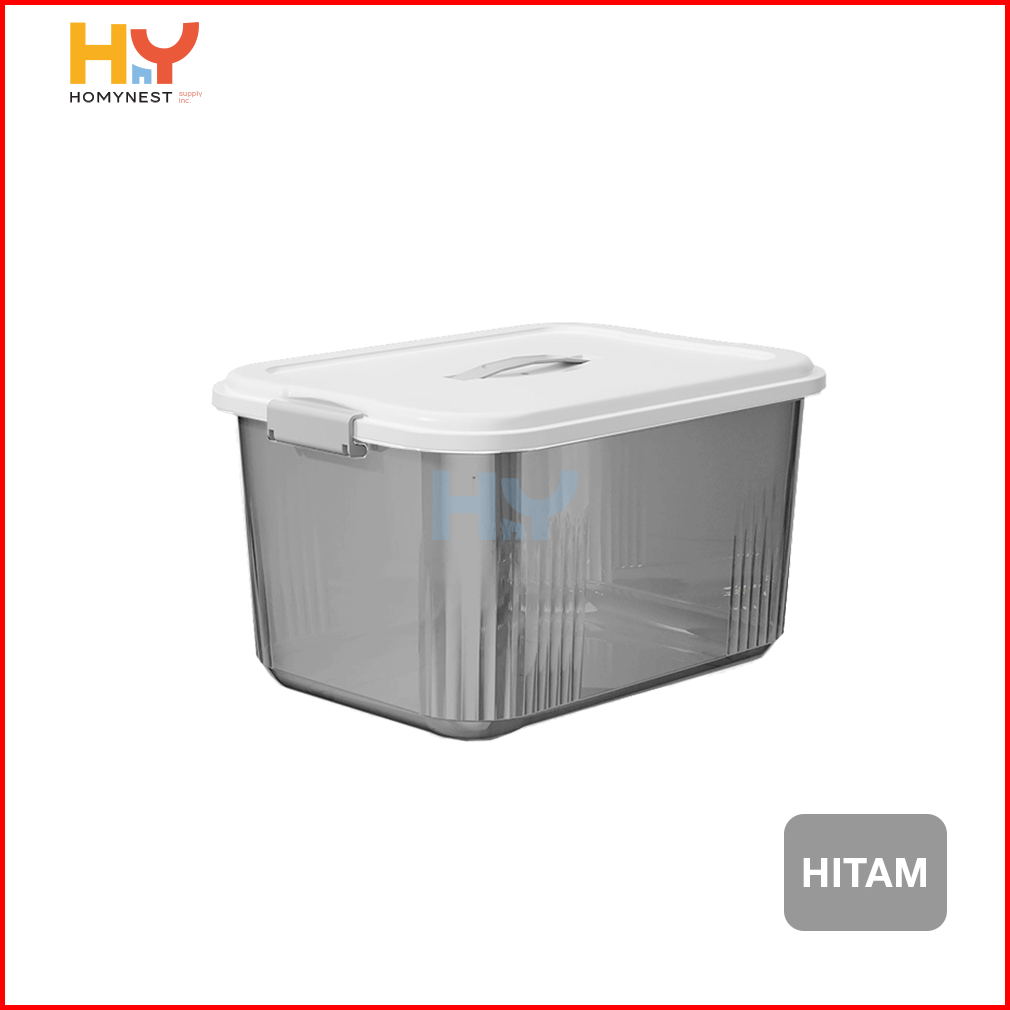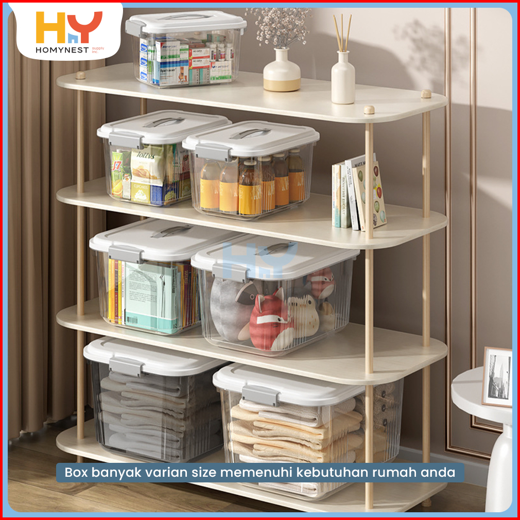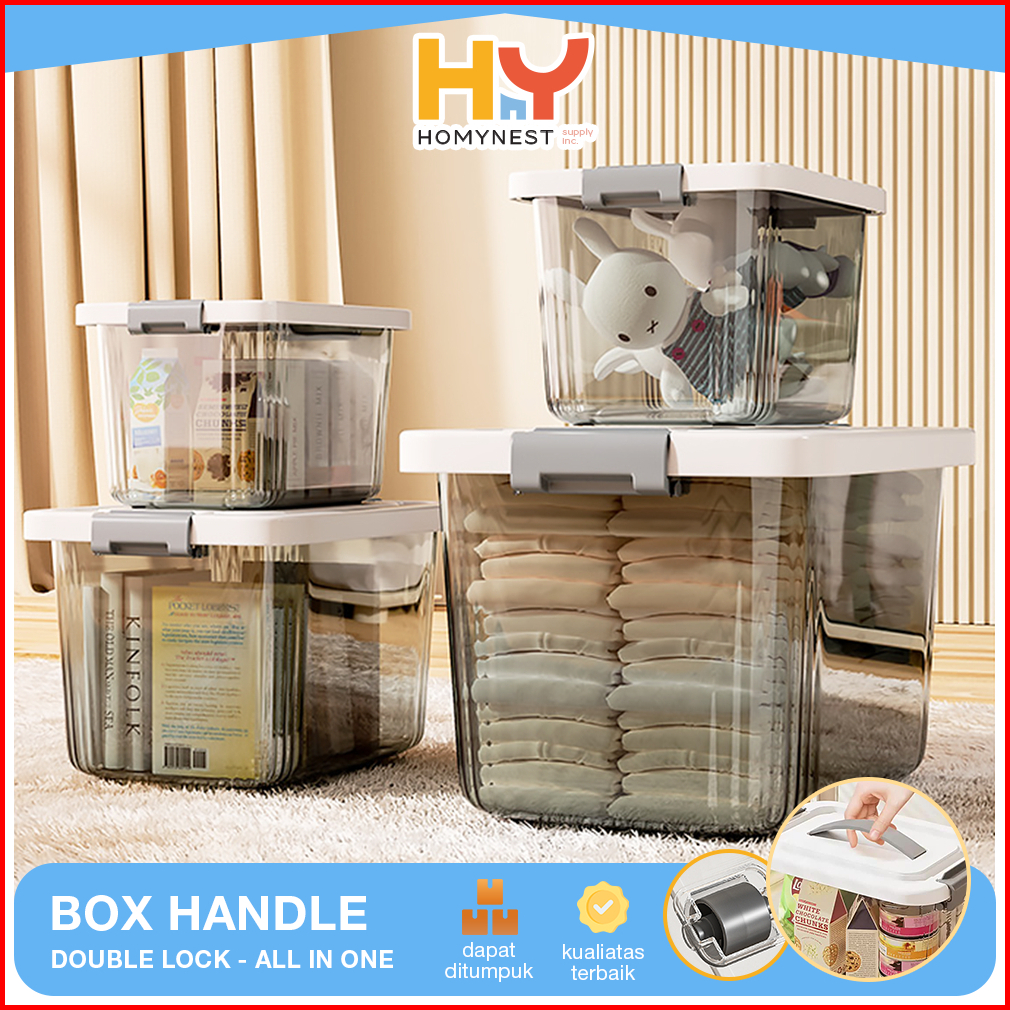 Homynsest Storage Container Box Plastik Besar Kotak Penyimpanan Barang Serbaguna Handle Double Lock Hitam