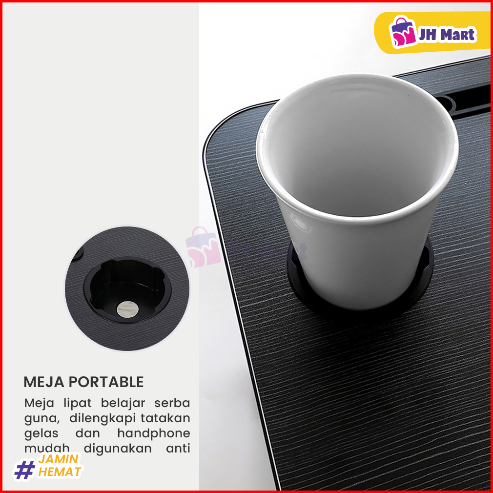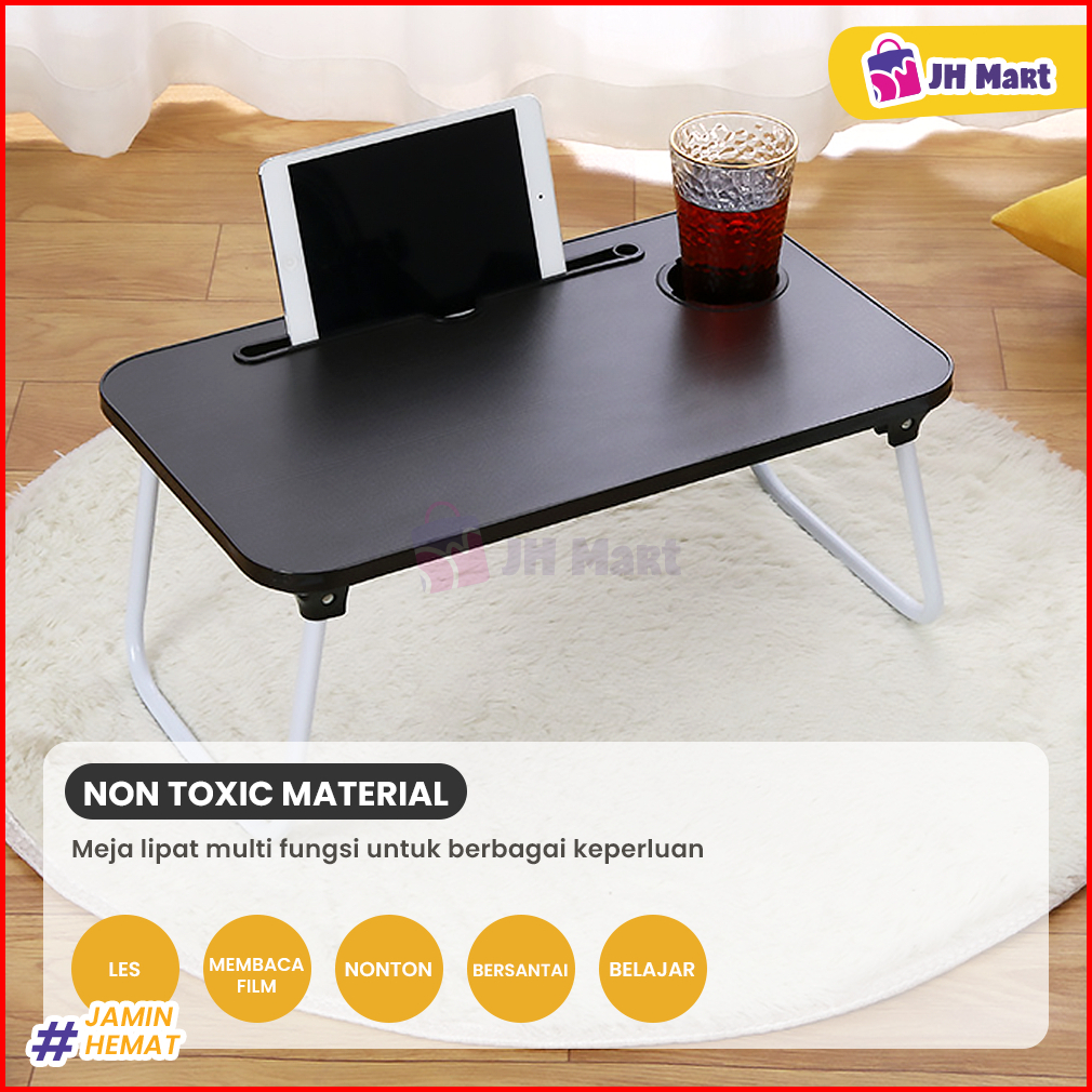 Jhm - Meja Belajar Laptop Portable Lipat Lesehan Serbaguna Kayu Hpl Kaki Besi