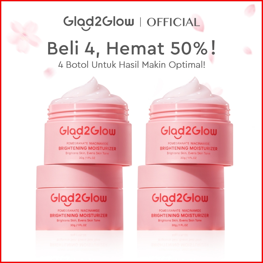 Hemat 4pcs Glad2glow Moisturizer Series Mencerahkan Pencerah Wajah Anti Jerawat Penuaan Hilangkan Flek Tenangkan Kulit N