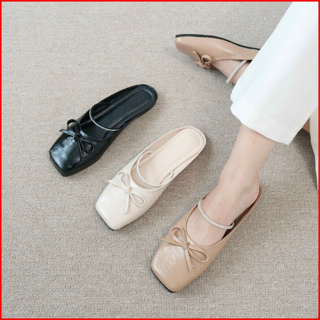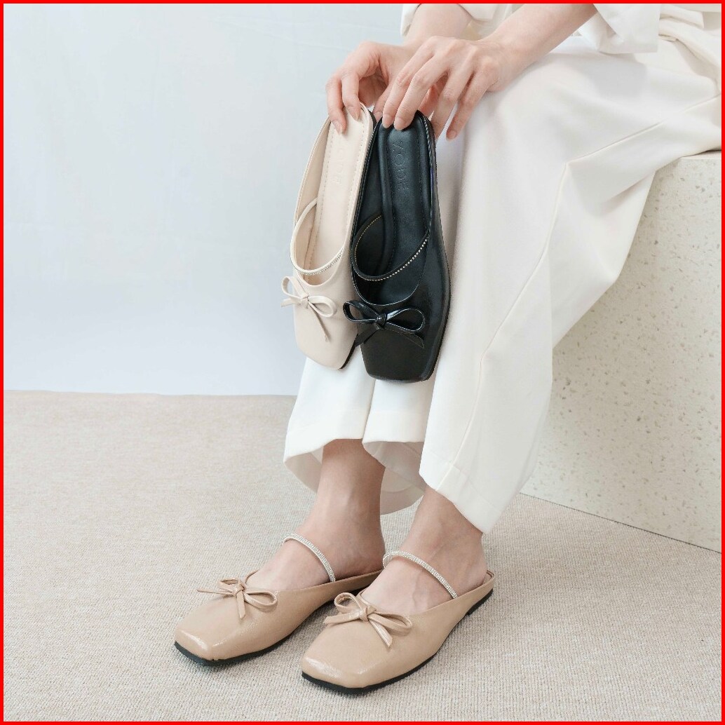 Zode Anastasia Flatshoes Sepatu Sandal Flat Shoes Mules Wanita Black Ivory Latte