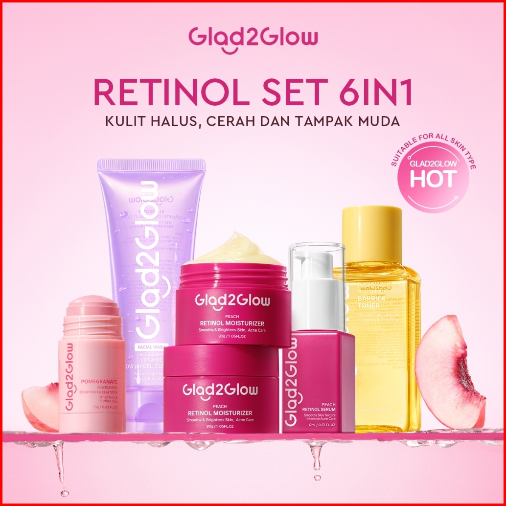 Glad2glow Retinol Set All In 1 Bundle Paket Skincare-moisturizer Serum Cleanser Toner Clay Stick-peach Moisturizer Skin