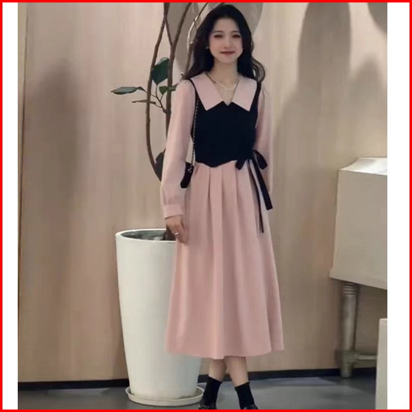 Long Dress Polos Korean Style Ulang Tahun Dress Pink Soft Wanita Elegan Mewah Kondangan Baju Dress Lebaran 2025 Remaja M
