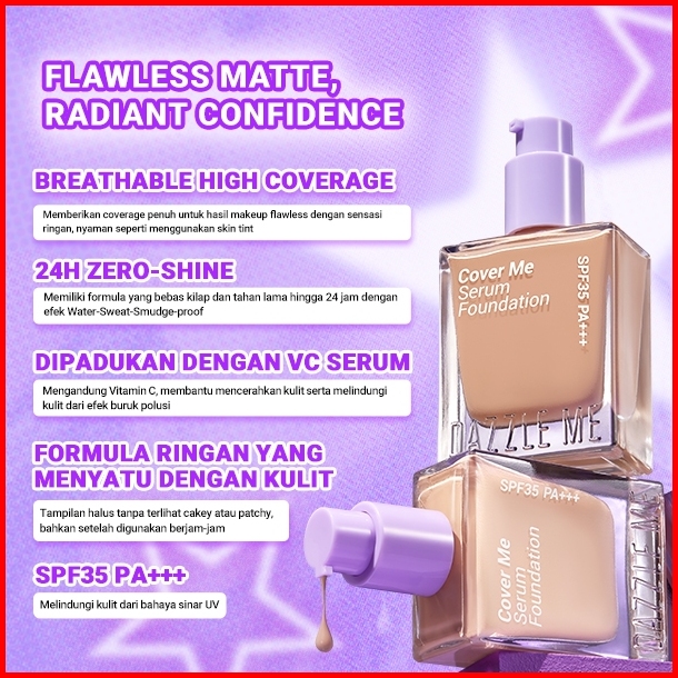 New Launch Dazzle Me Cover Me Serum Foundation Spf35 Pa Foundation Hasil Matte Ringan Tahan Lama 24 Jam Serum Infused Fo