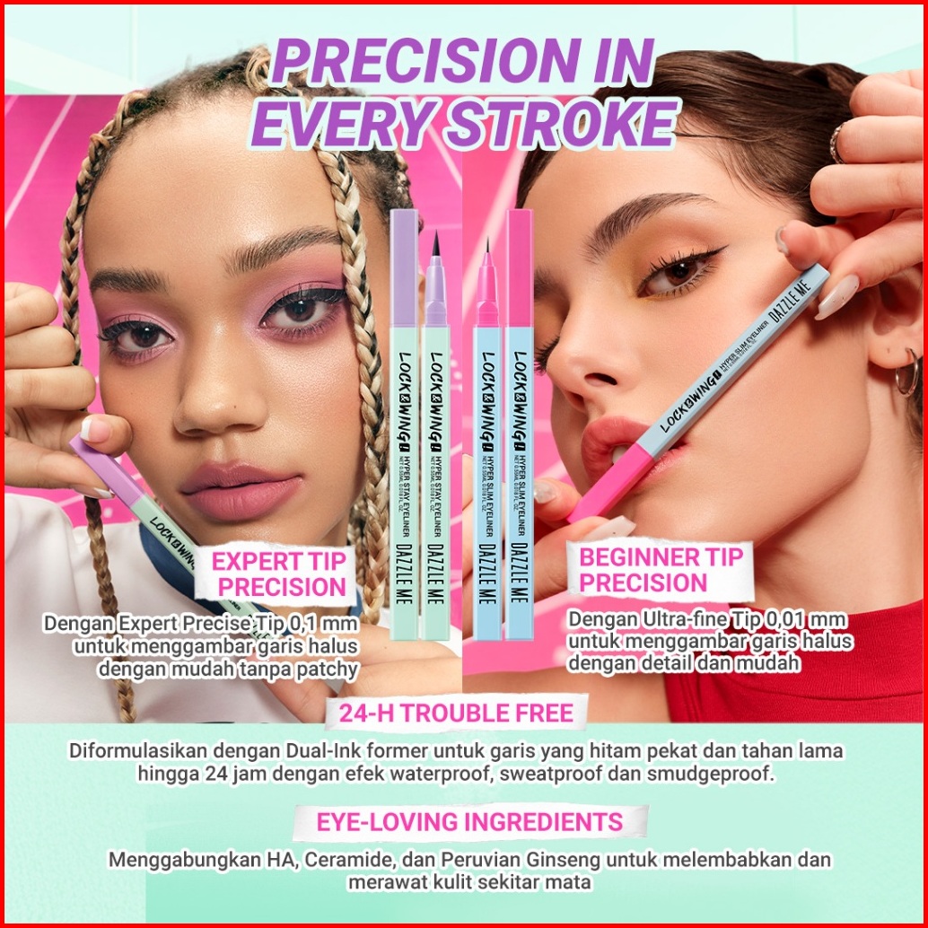 Dazzle Me Lock Wing Duo Eyeliner Series Hyper Stay And Hyper Slim Smudgeproof Transferproof Waterproof Eyeliner Precise
