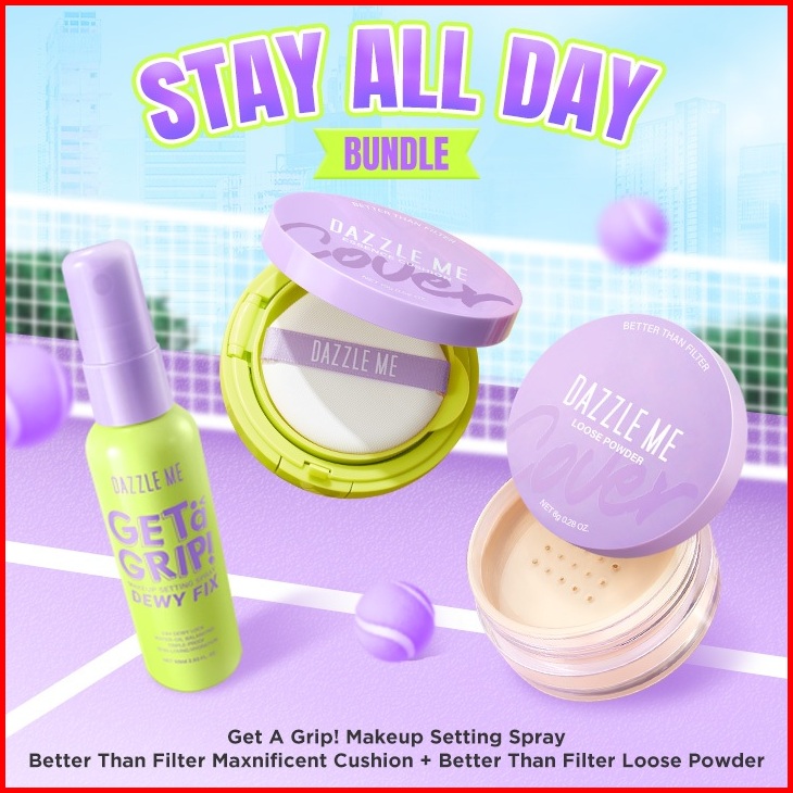 Beli 3 Lebih Hemat Dazzle Me Stay All Day Bundle Setting Spray Dewy Cushion Loose Powder 24h Lock And Stay Oil Free Flaw
