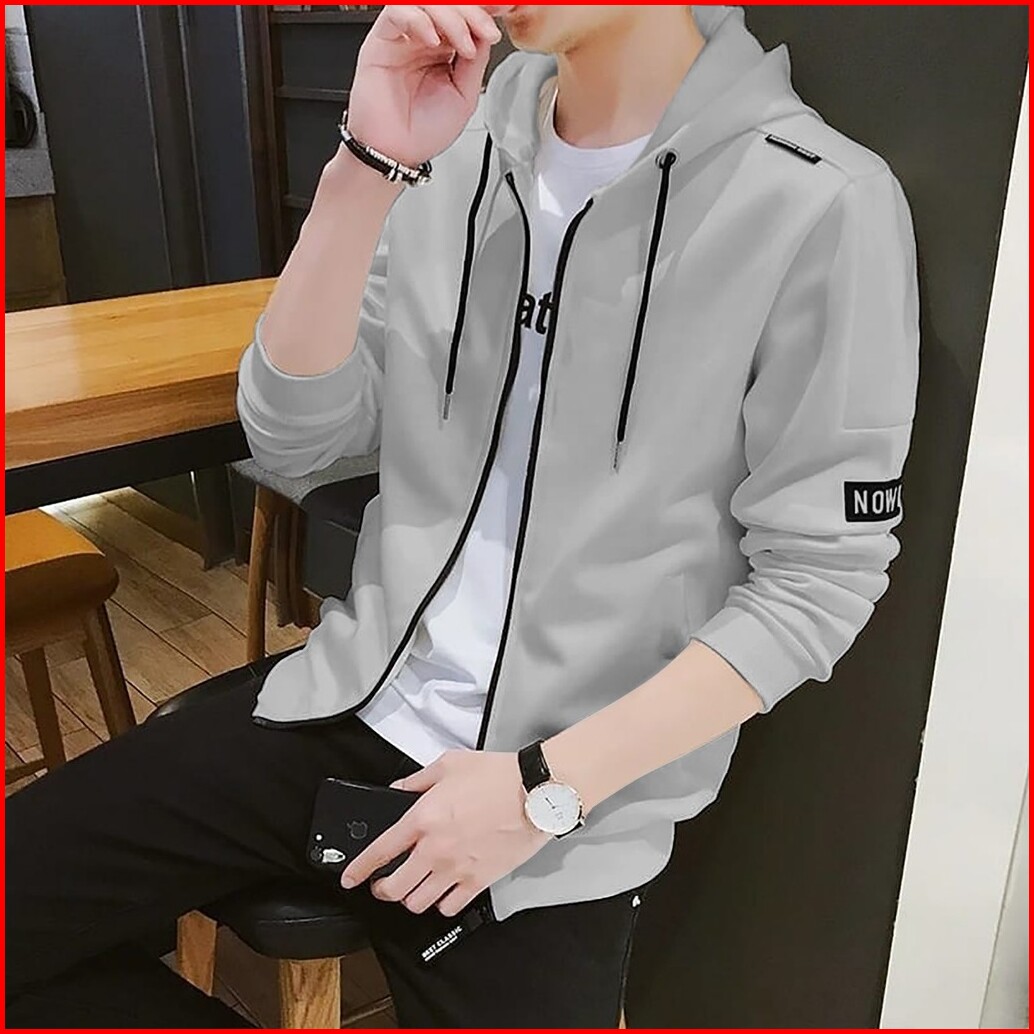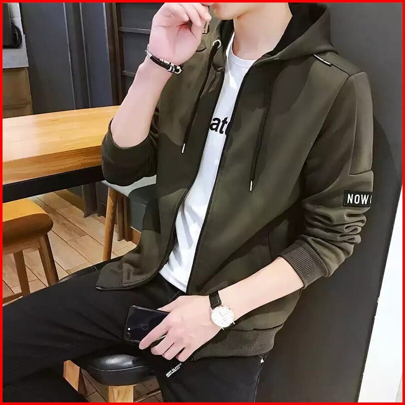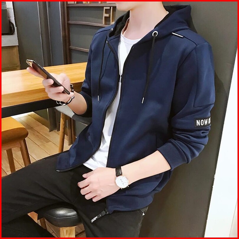 Tototashop.jaket Hoodie Pria Now Ao Bahan Fleece Tebal Sleting Ada Kantong Kiri Kanan.