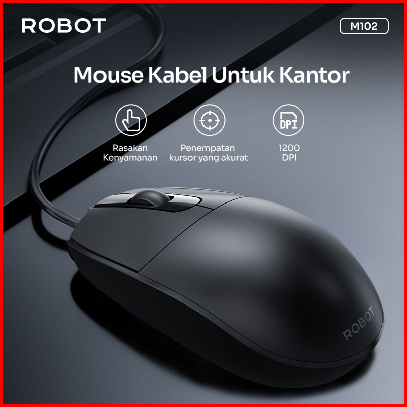 Robot M102 Mouse Kabel Optical Office 1600dpi Akurasi Tinggi Ergonomis Anti Slip Scroll Plug Play Usb Untuk Laptop Kompu