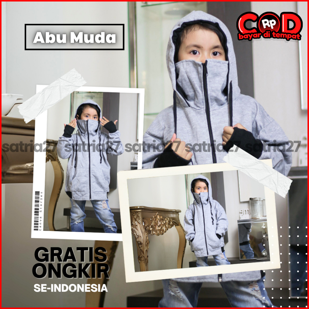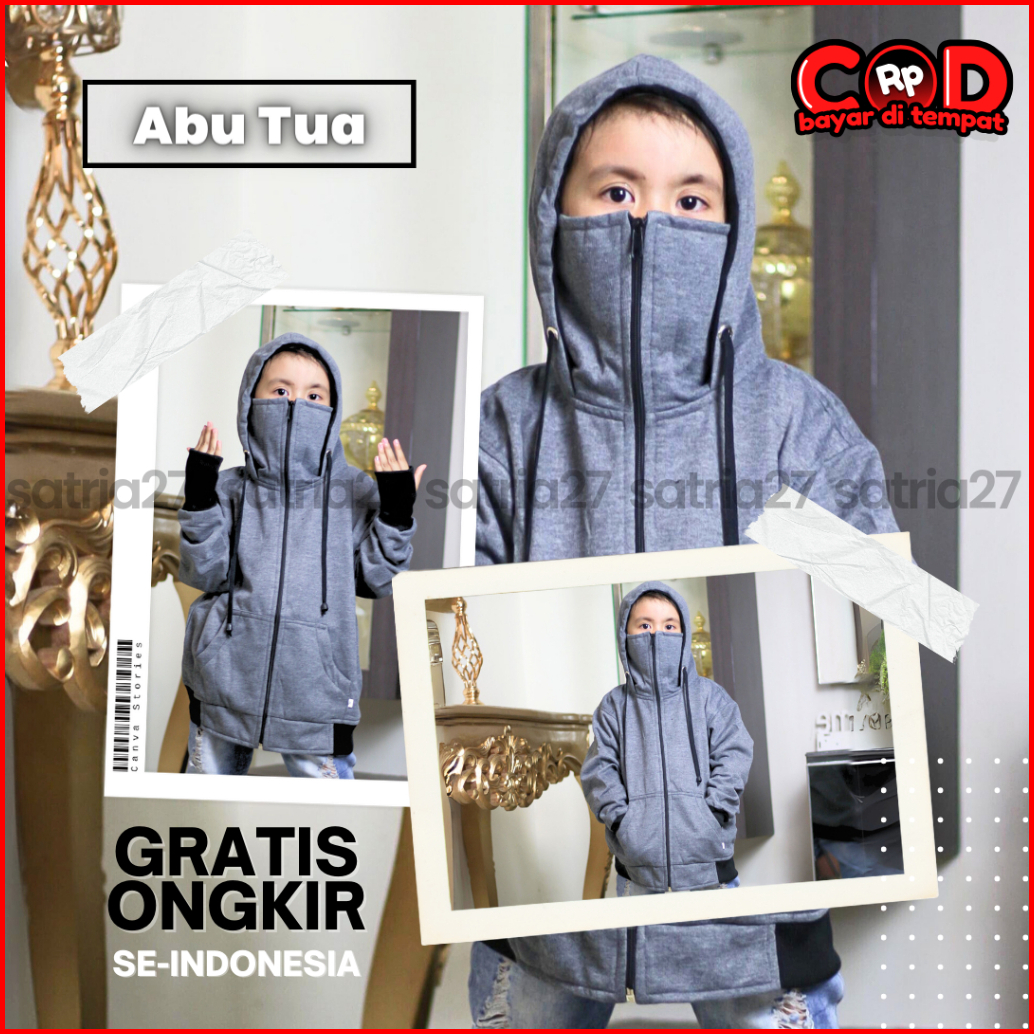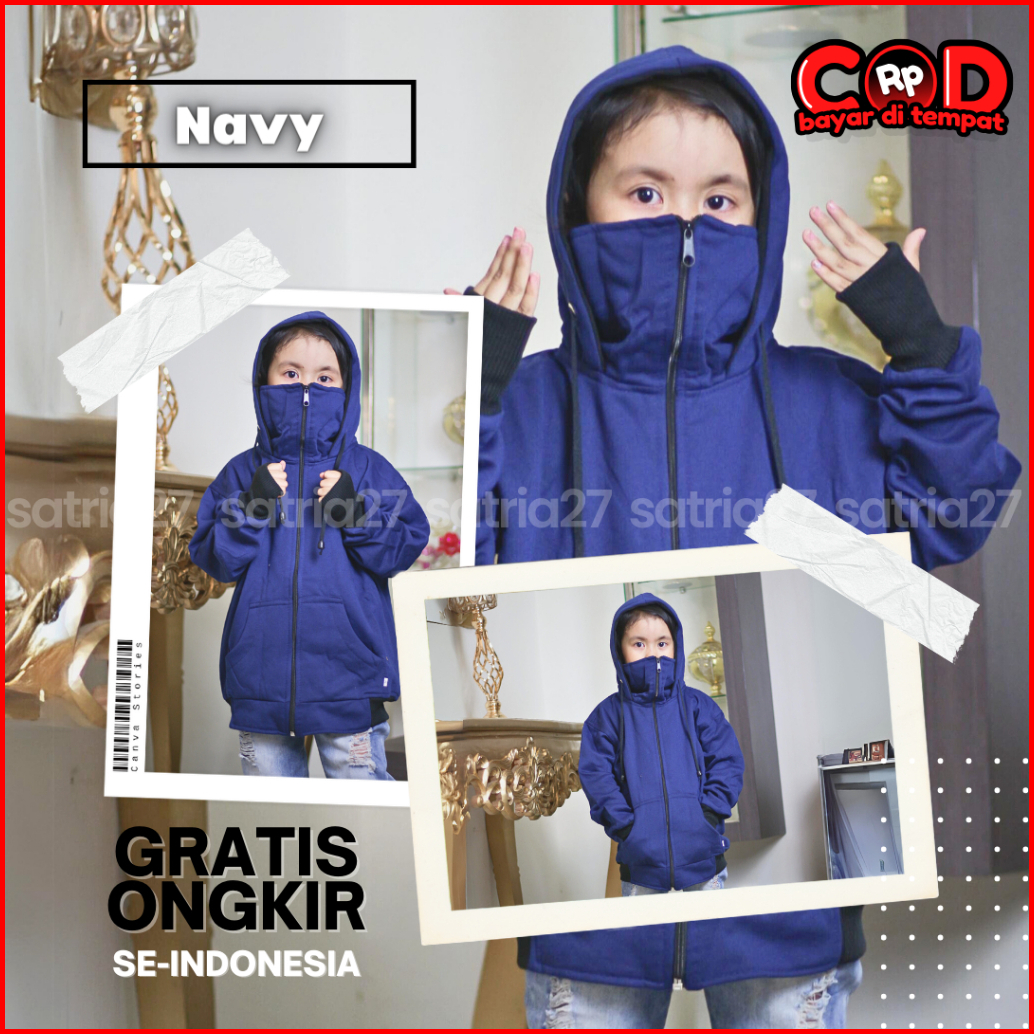 Jaket Anak Hoodie Zipper Roundhand Ninja Kekinian Lakilaki Perempuan Usia 2tahun Sampai 12tahun Polos Bahan Fleece Terba