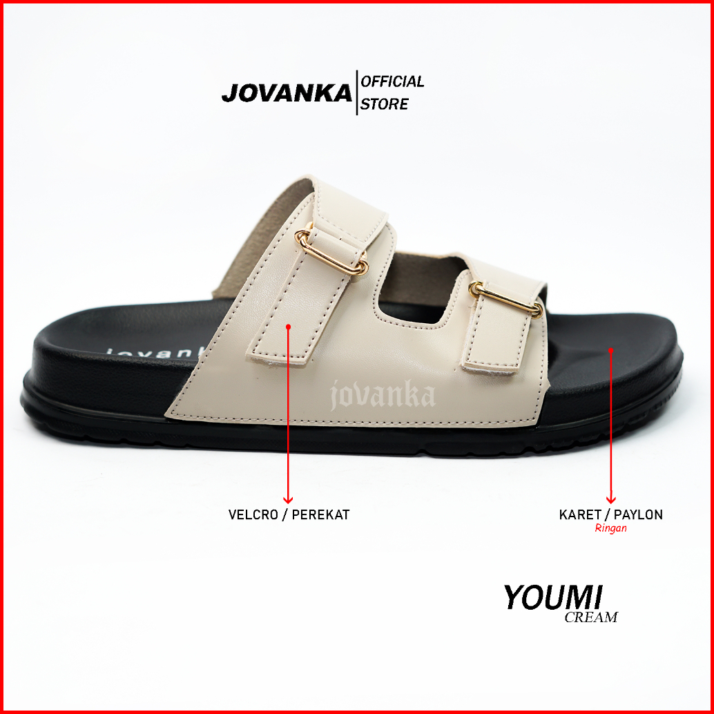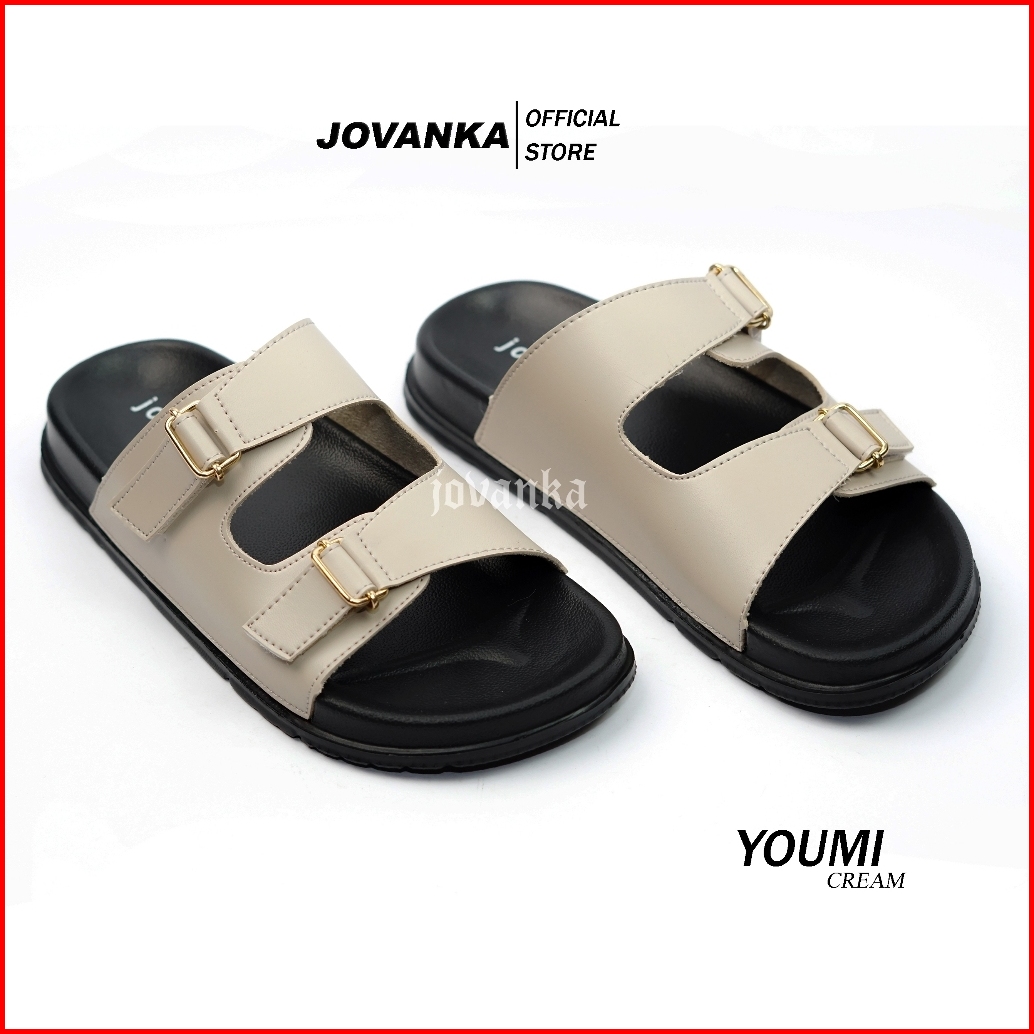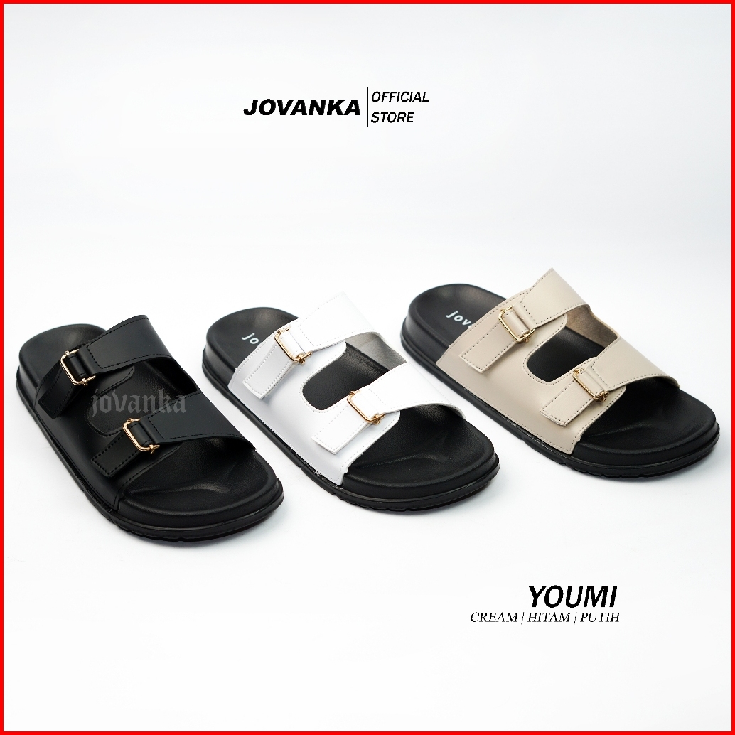 Jovanka Youmi - Sandal Wanita Platform Casual Sendal Selop Wanita Model Kekinian Cantik Elegan - Gesper Perekat Aktif Sa